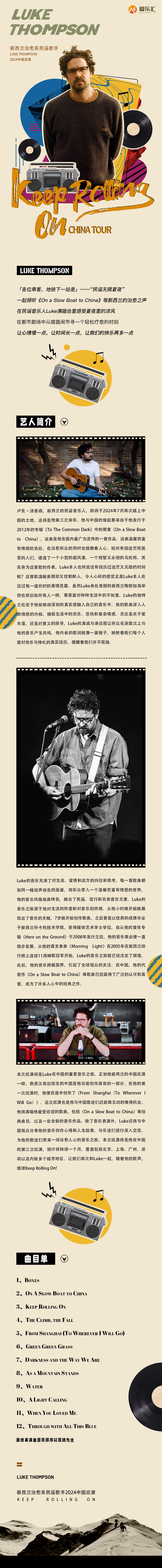 演出名称:西安 | 爱乐汇 新西兰治愈系民谣歌手 LukeThompson2024中国巡演 KEEP ROLLING ON