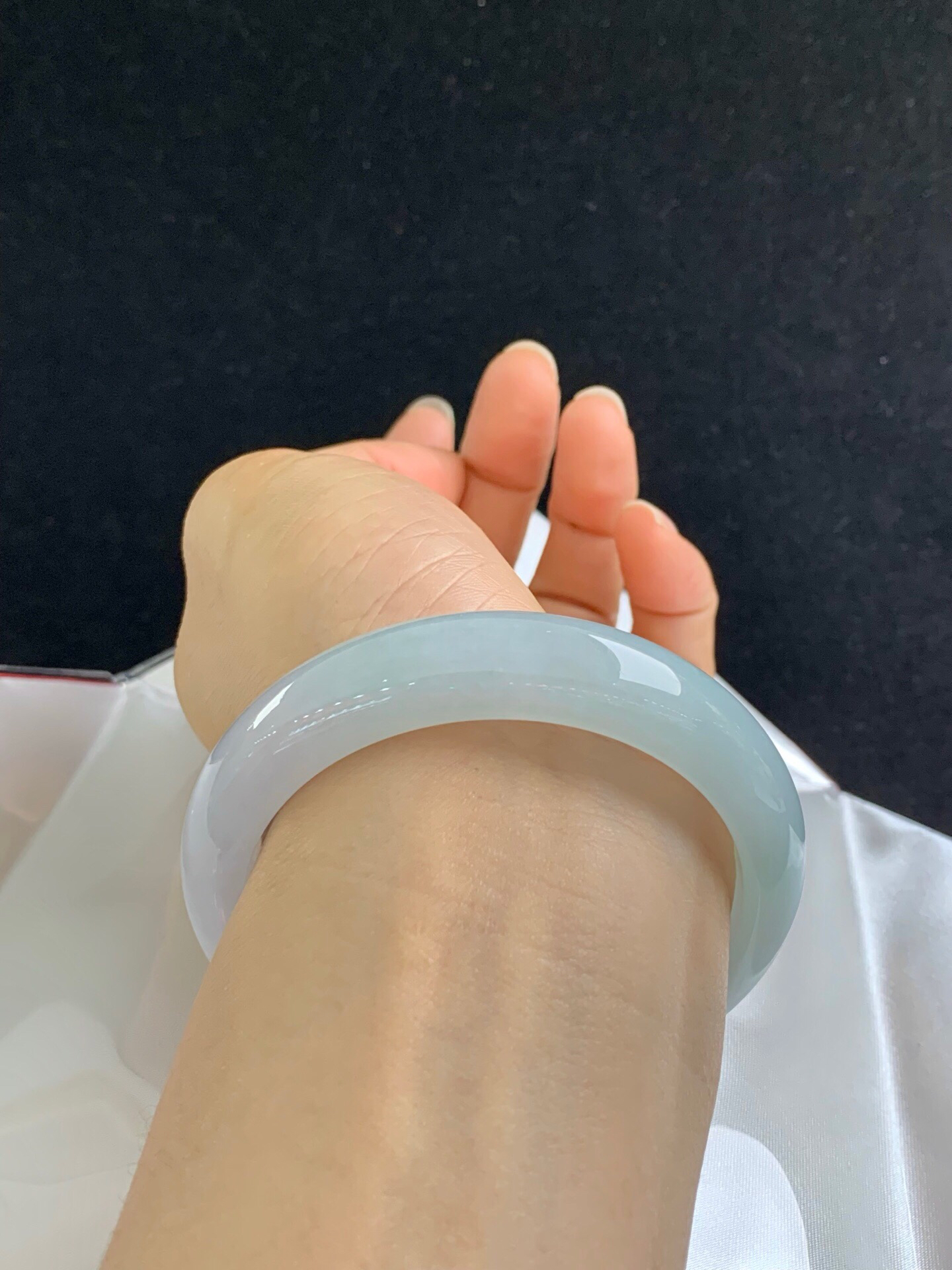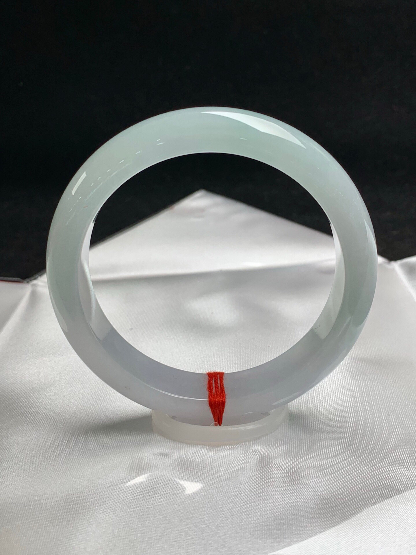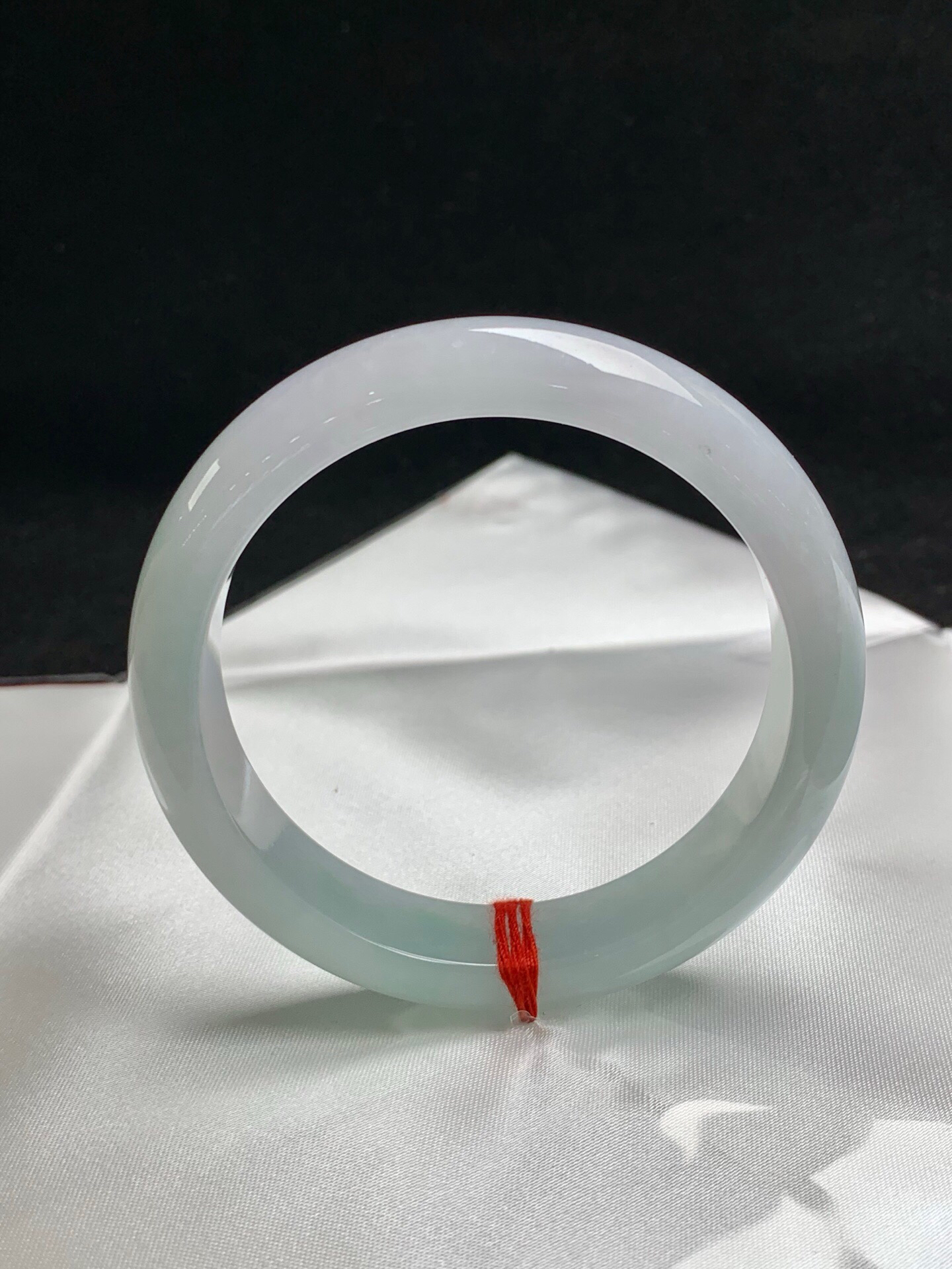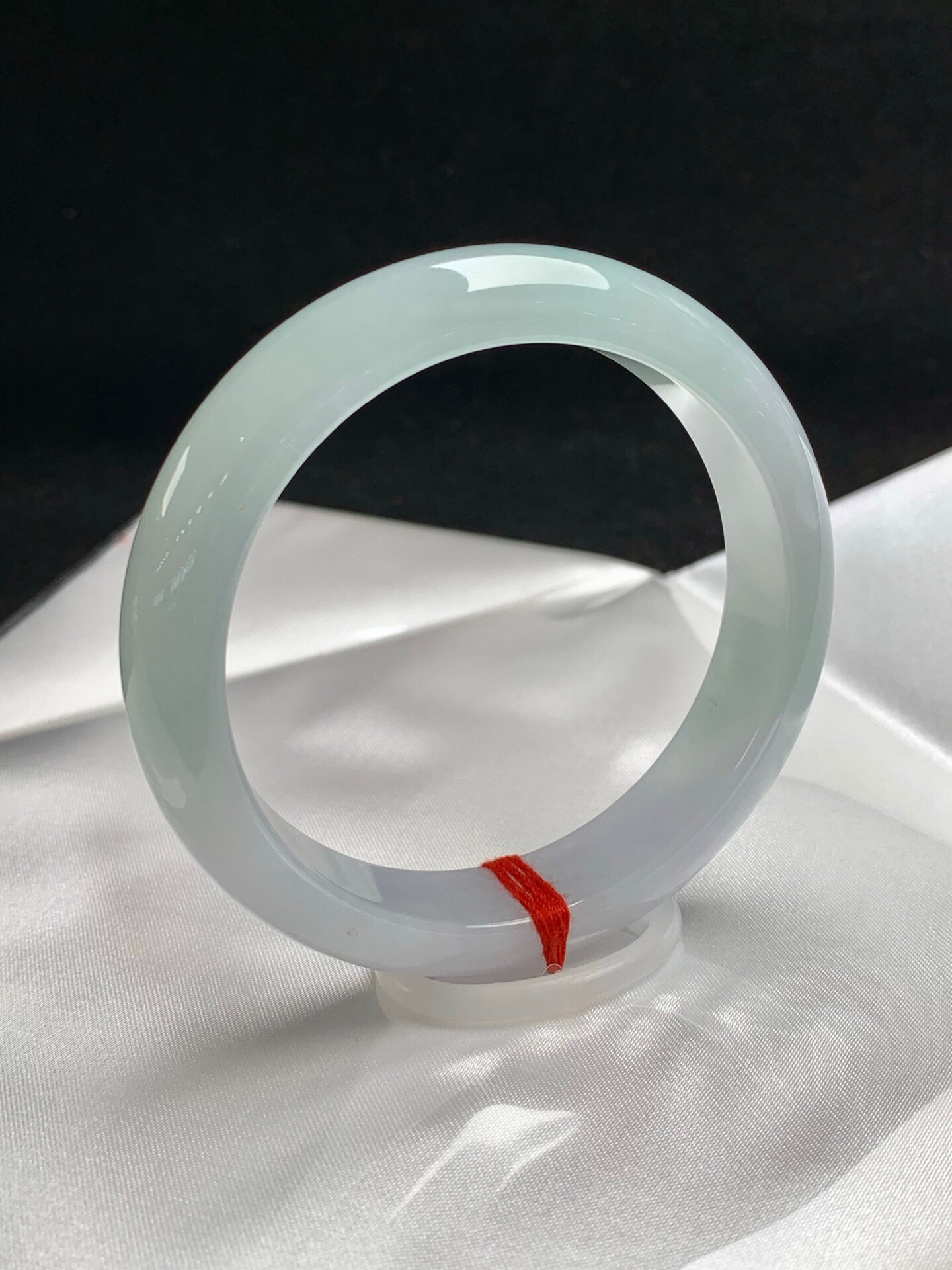 612712,58.5圈口,冰晴正圈平安镯,半截淡晴半截白底,半山半水色,清爽水润,完美无裂,尺寸:58.5-13.7-8.2,超值价💰18000 #优石客珠宝#香玉荟萃