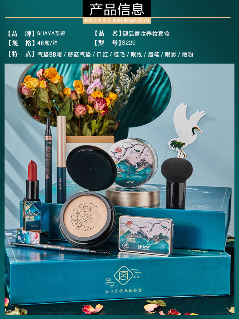 【彩妆套装】花御品宫妆西子彩妆套装口红蘑菇头气垫睫毛膏八件套彩妆套盒