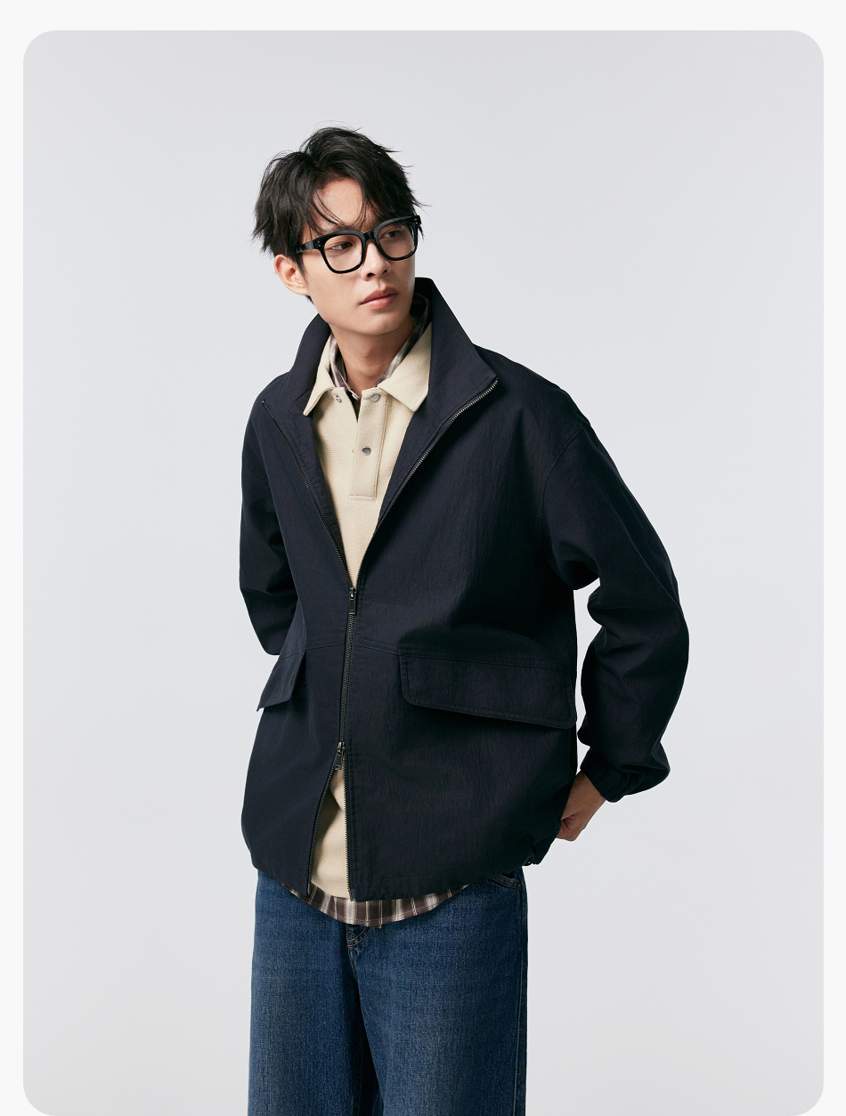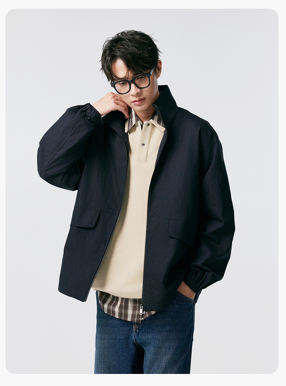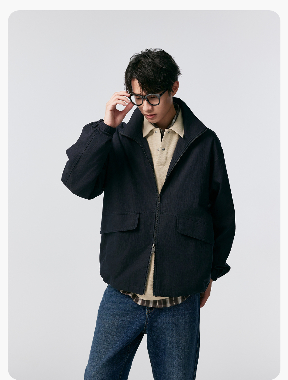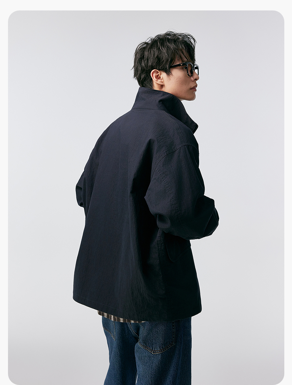 棉仓356811004-宽松棉锦肌理立领分割夹克
