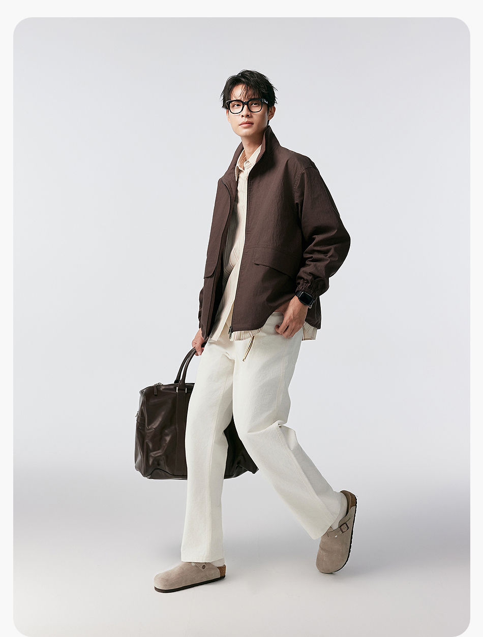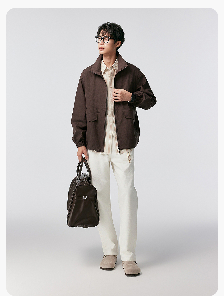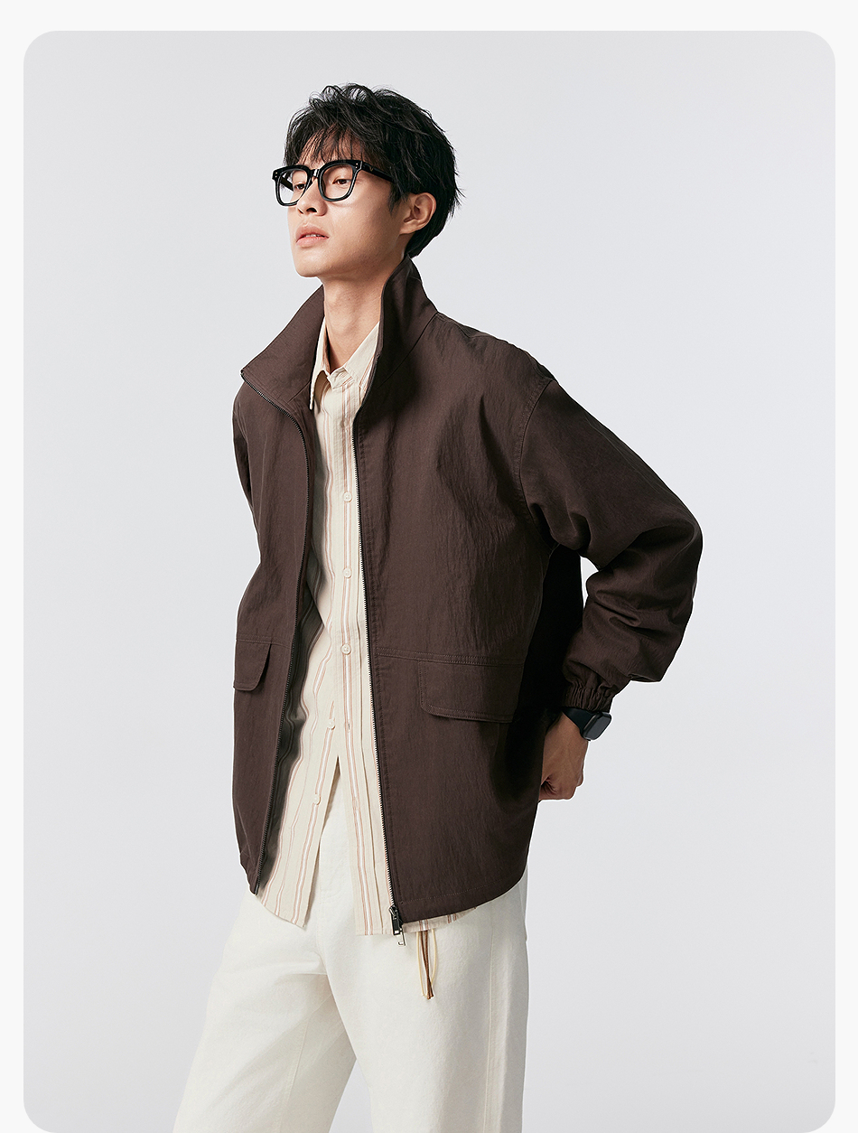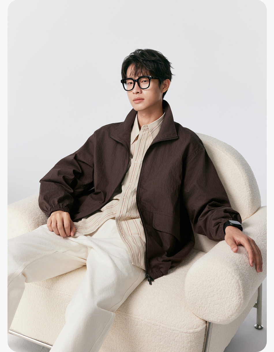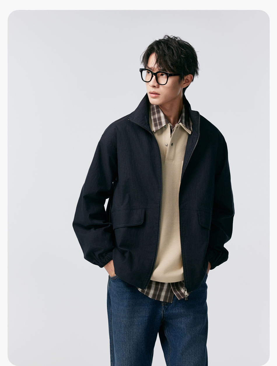 棉仓356811004-宽松棉锦肌理立领分割夹克