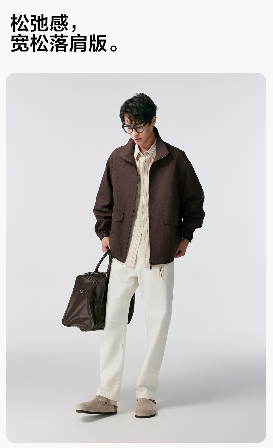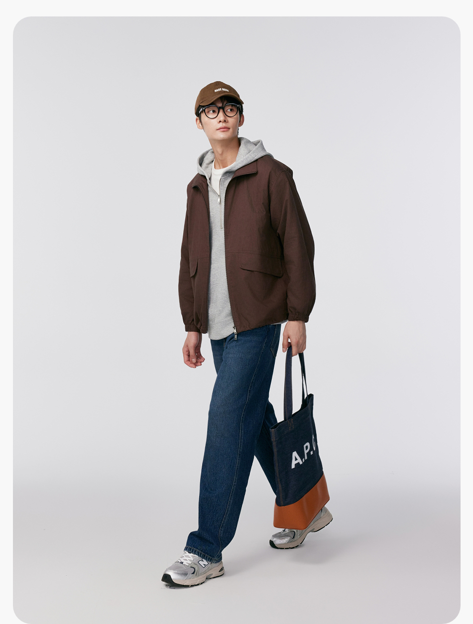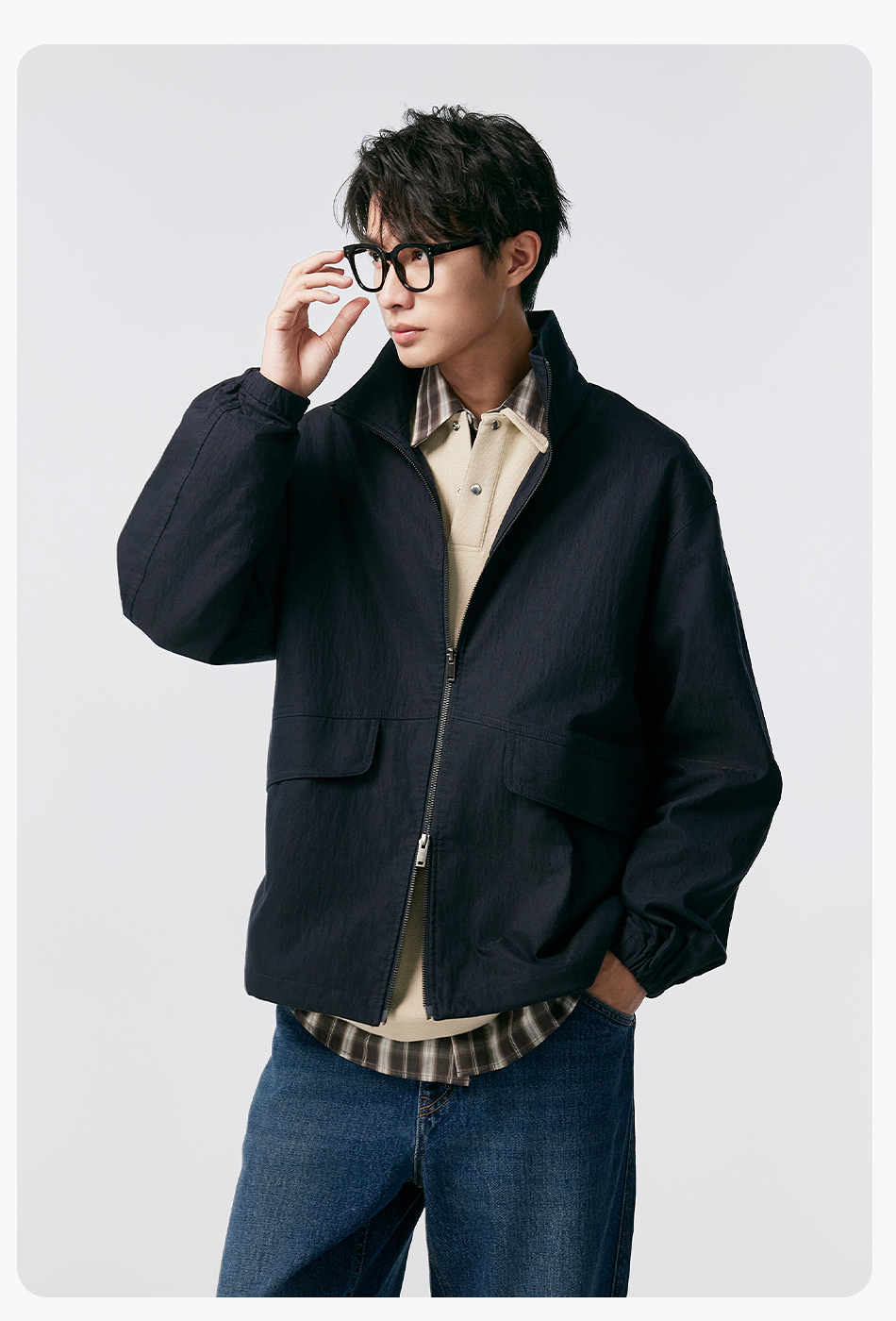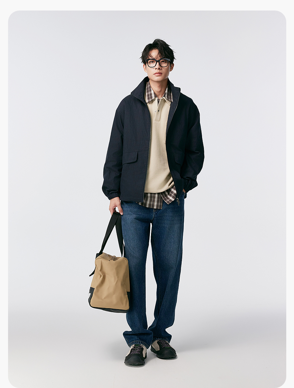 棉仓356811004-宽松棉锦肌理立领分割夹克