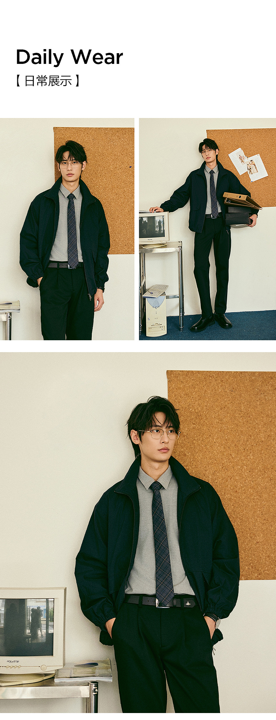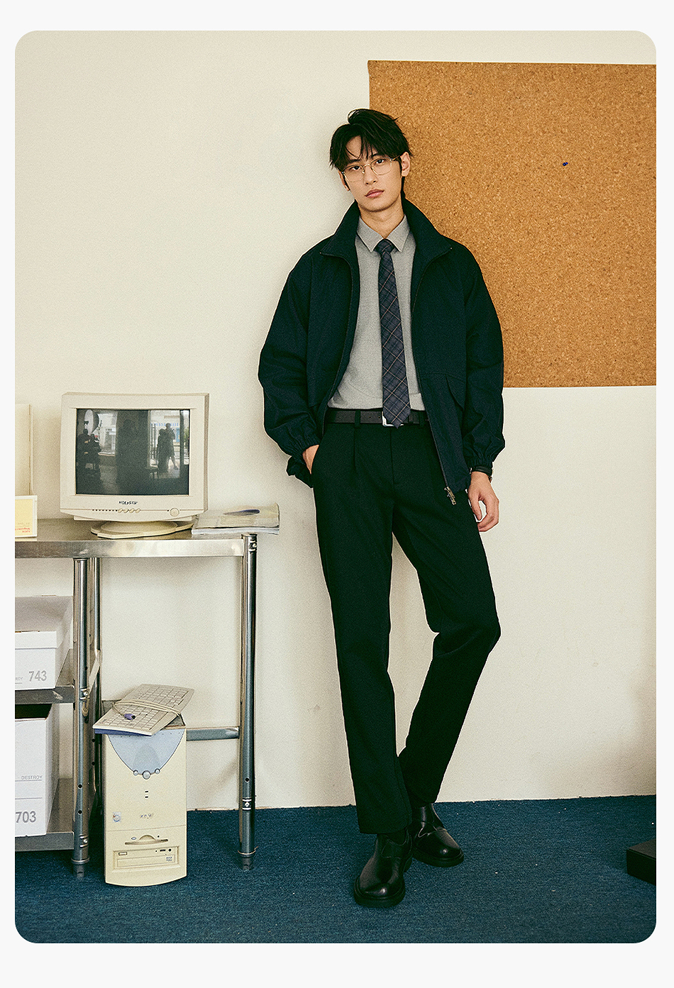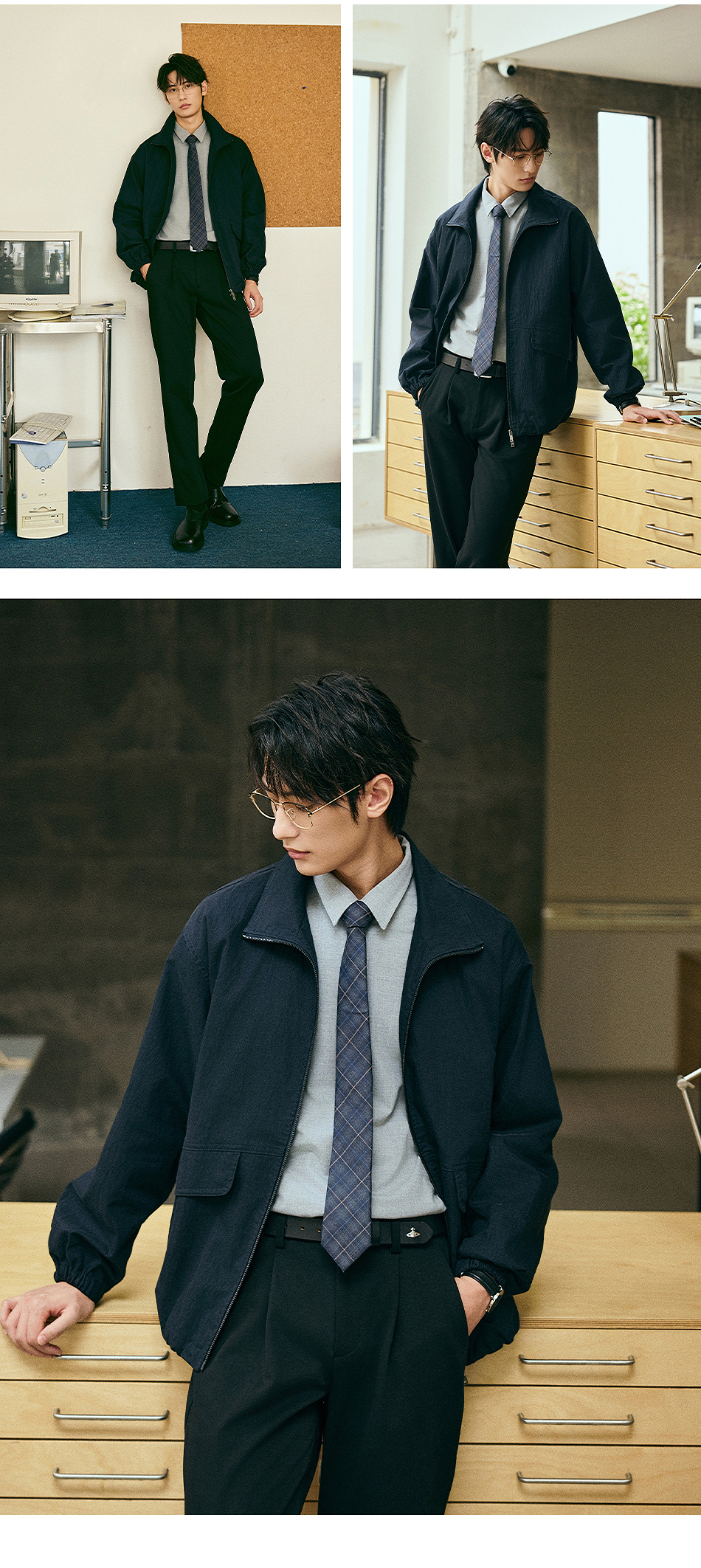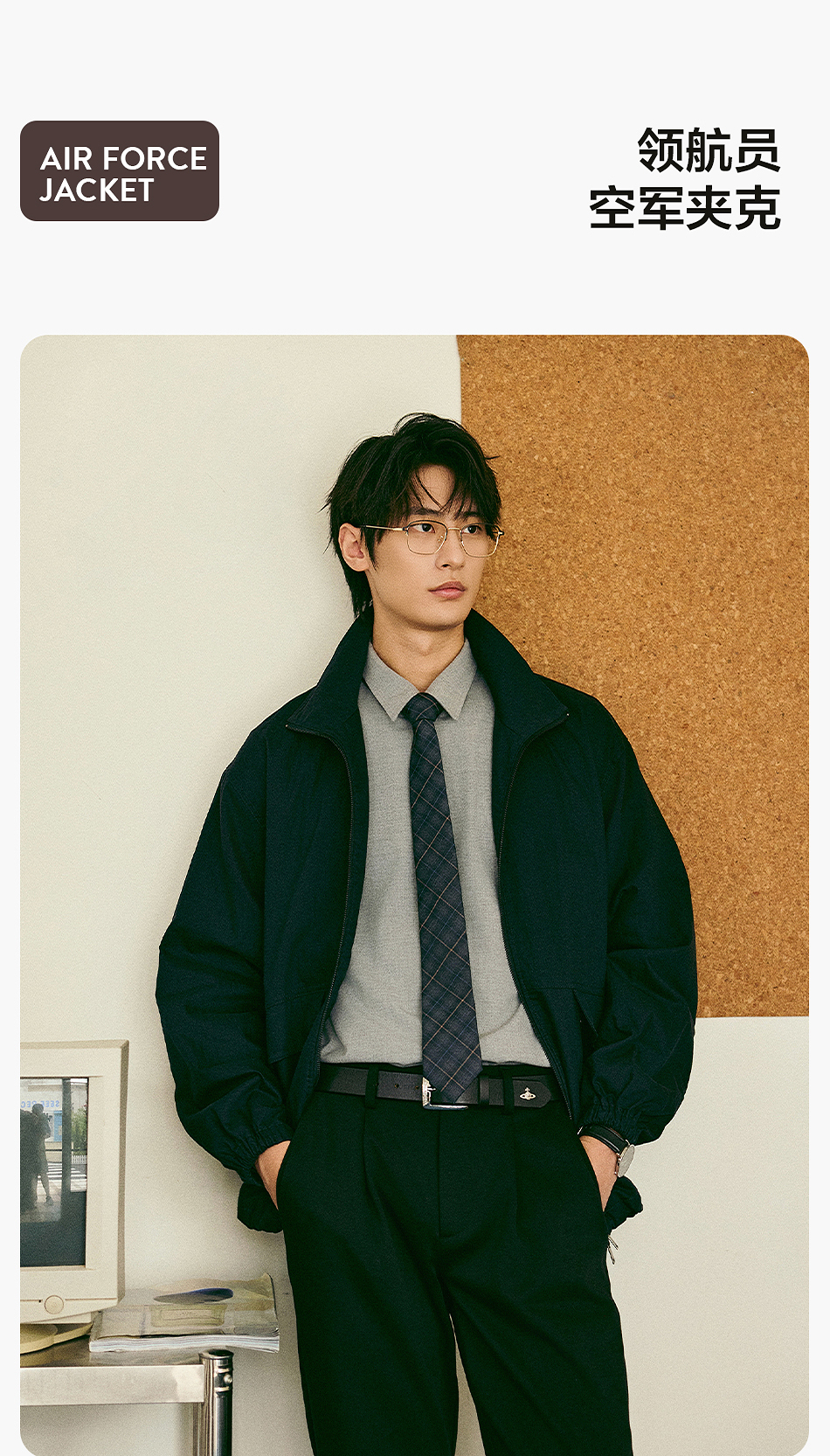 棉仓356811004-宽松棉锦肌理立领分割夹克