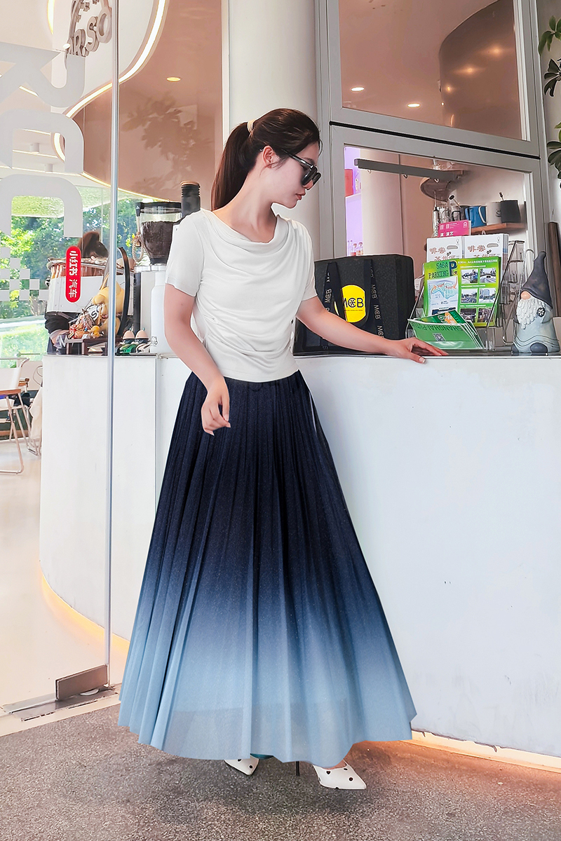 而且面料自带温润高级的天然光泽感,不是廉价反光,而是如珍珠般柔和内敛的莹润,走动间光晕流转,贵气天成。