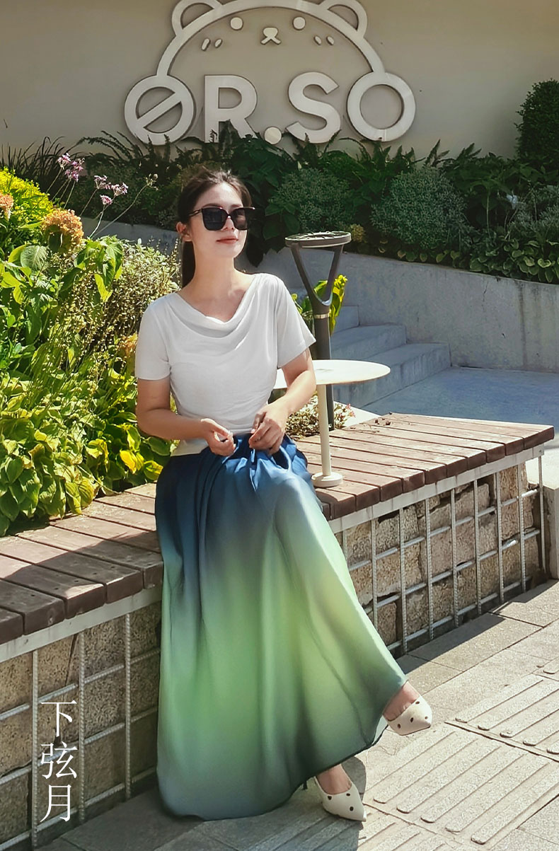 👉整体宽松版型:弹力很大的包容性强,穿着无束缚,完全不挑身材,搭配醋酸面料特有的垂坠感,走起路来衣摆飘飘,浪漫又空灵~