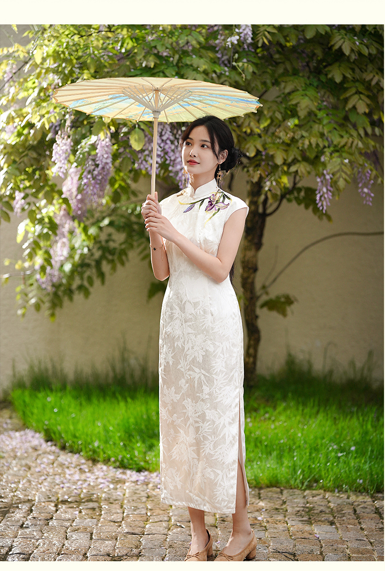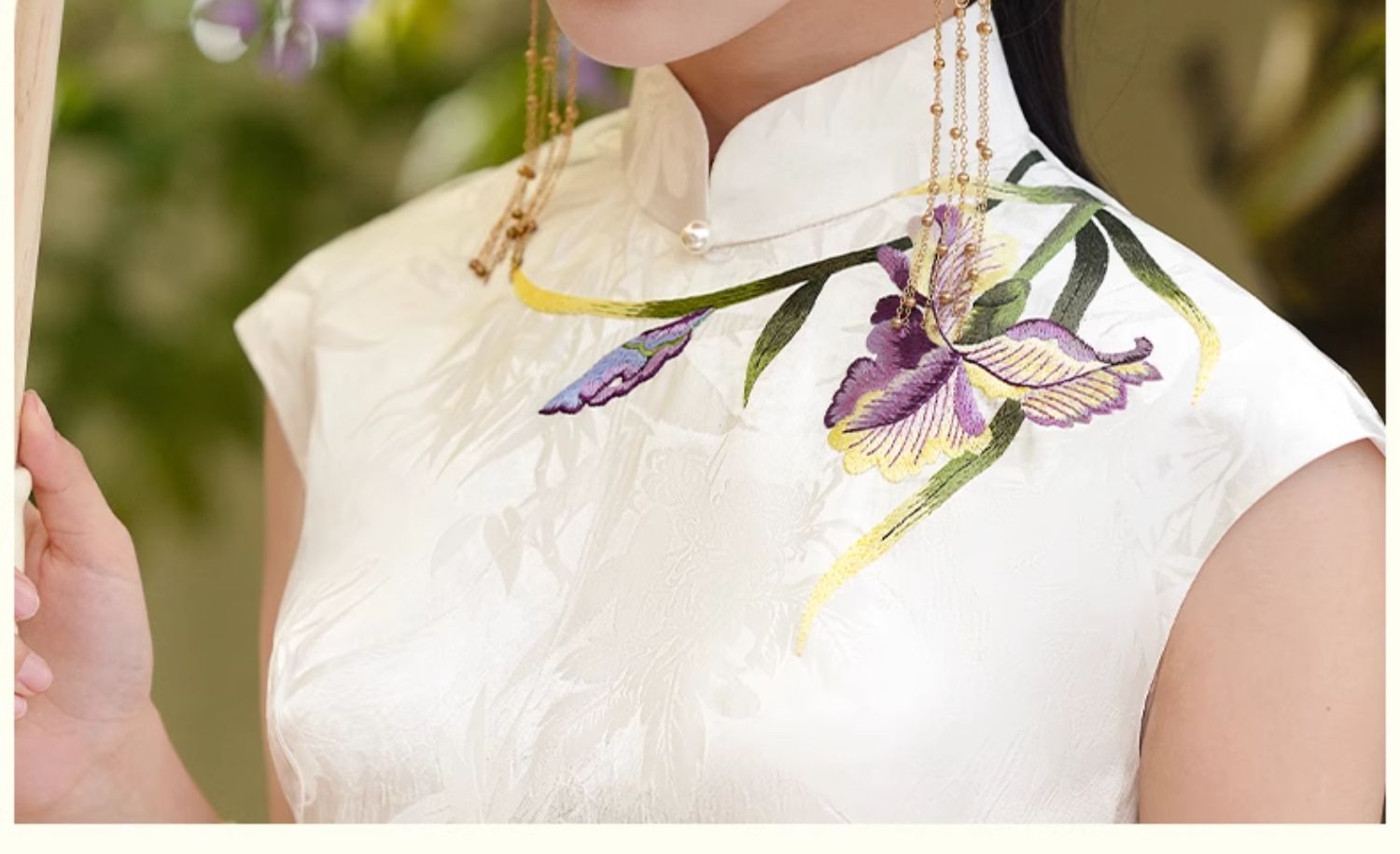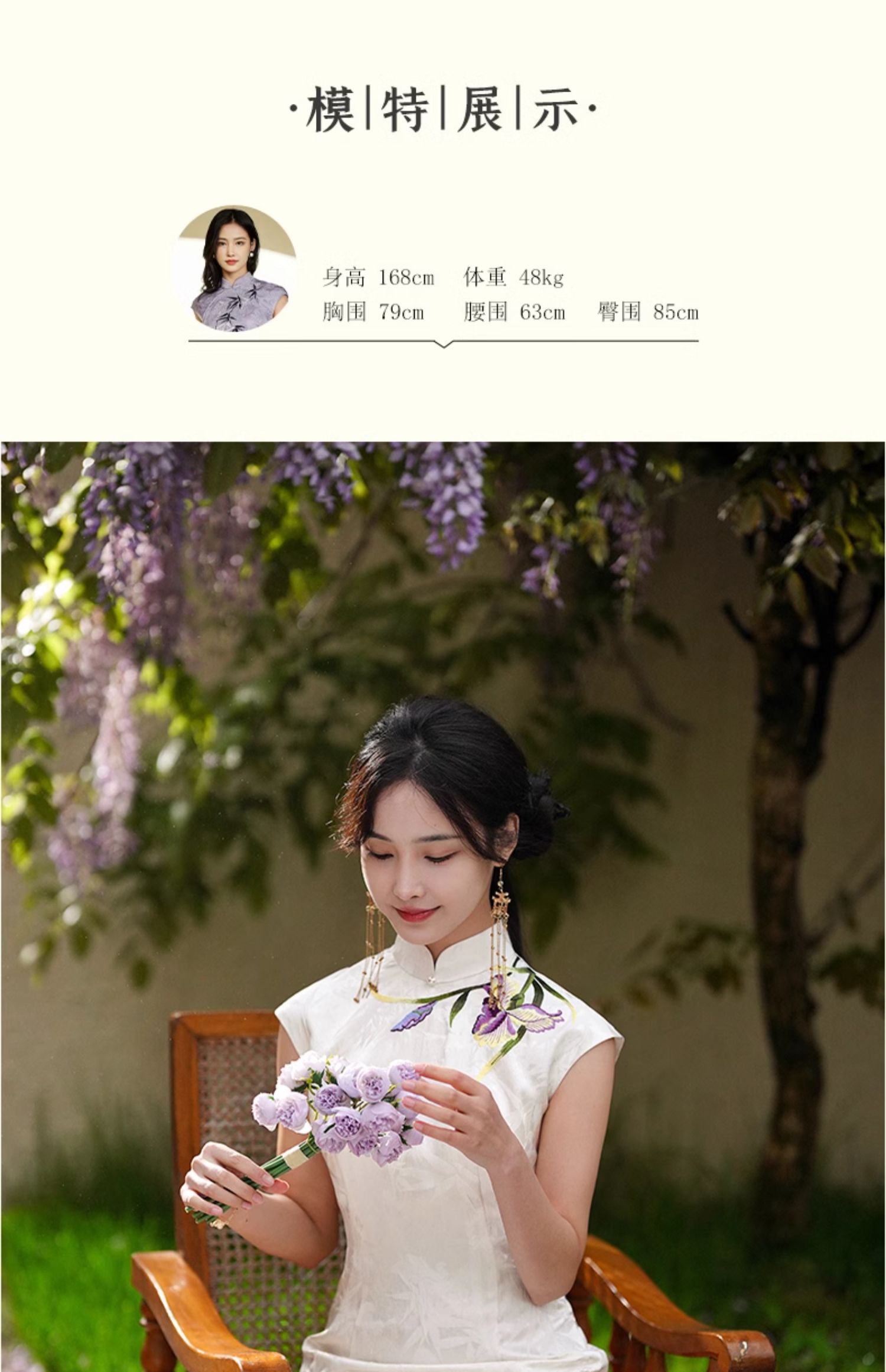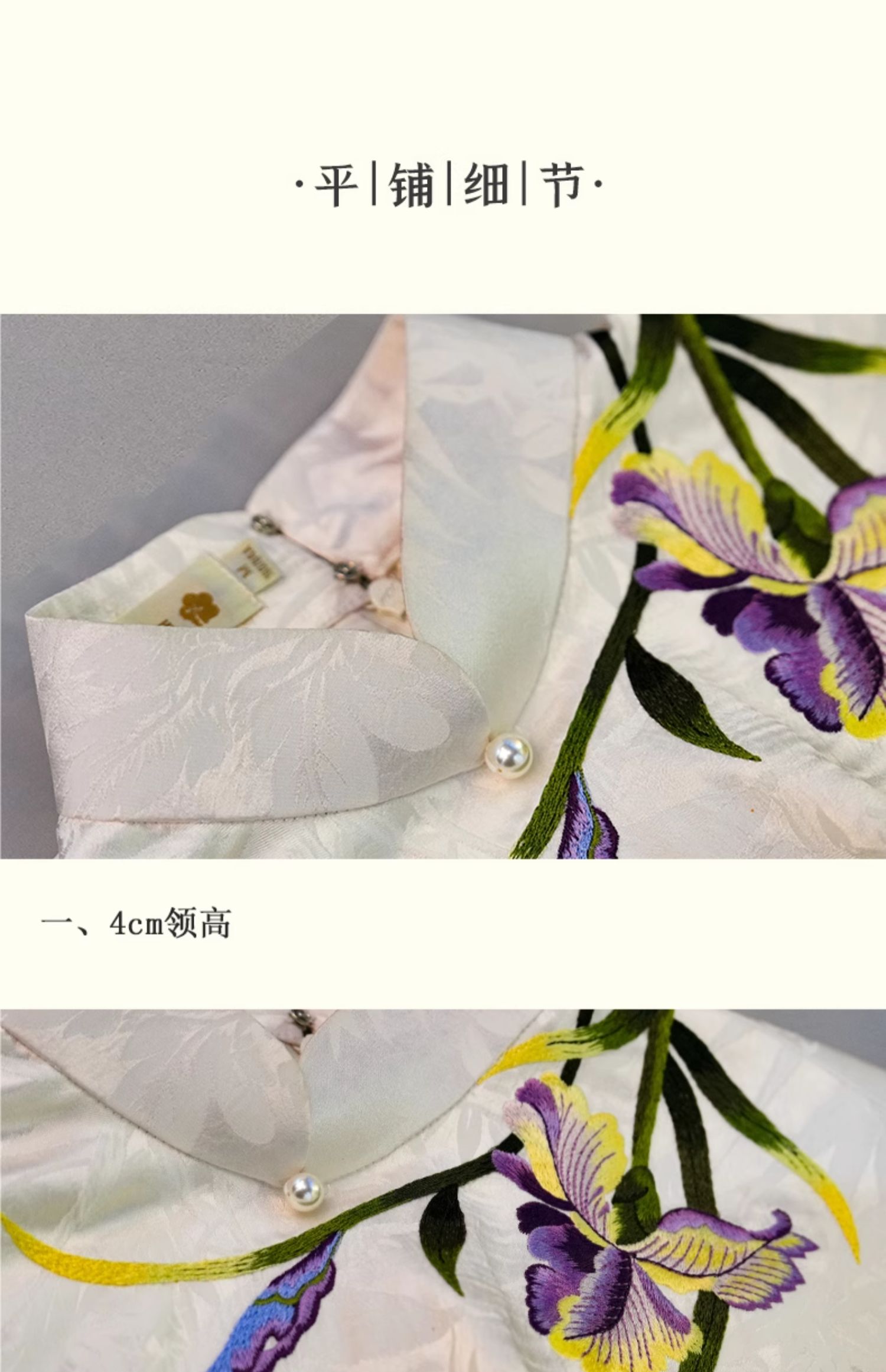 上海逸红颜瑾瑜2025年夏季新款小高订国风刺绣提花面料新中式旗袍