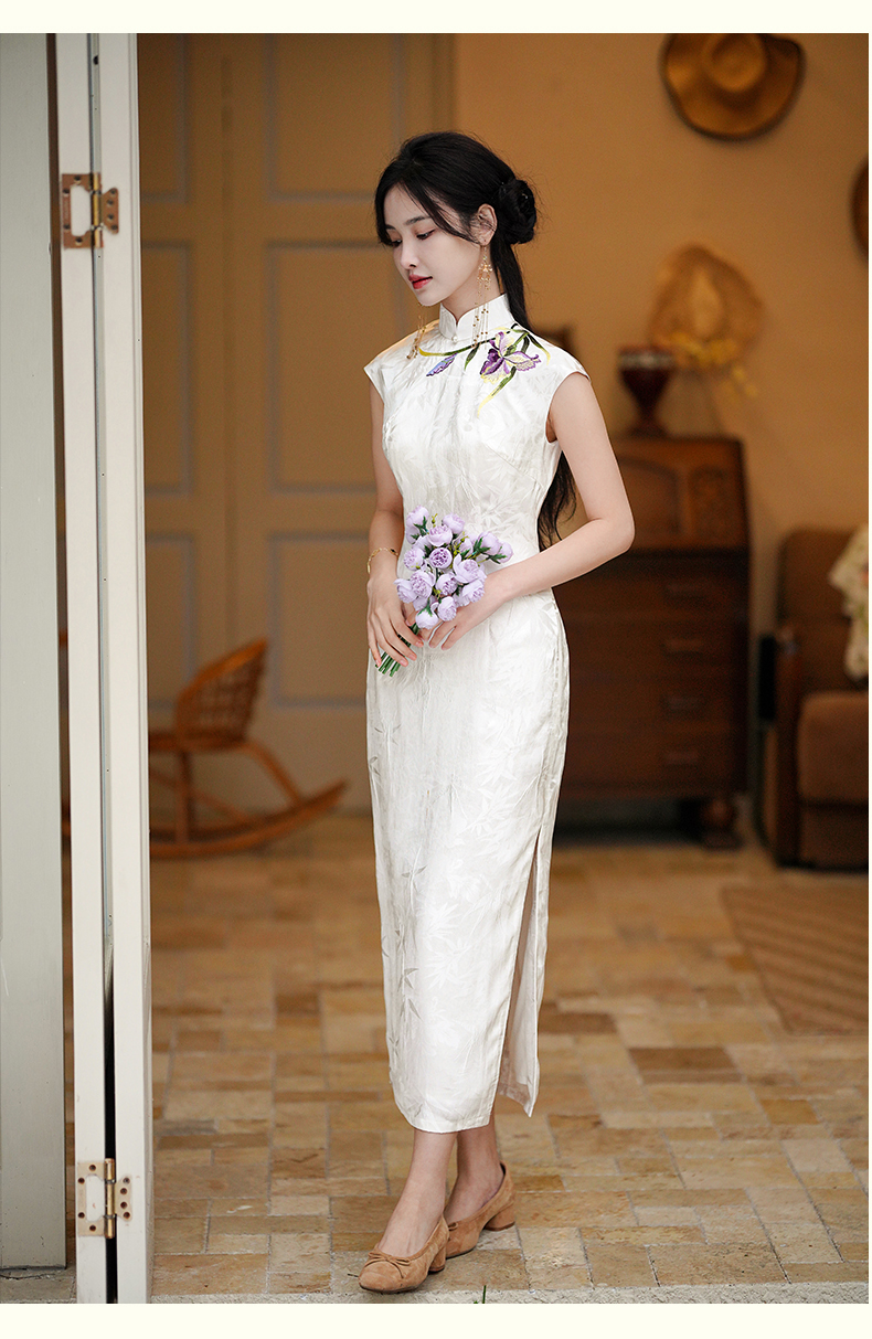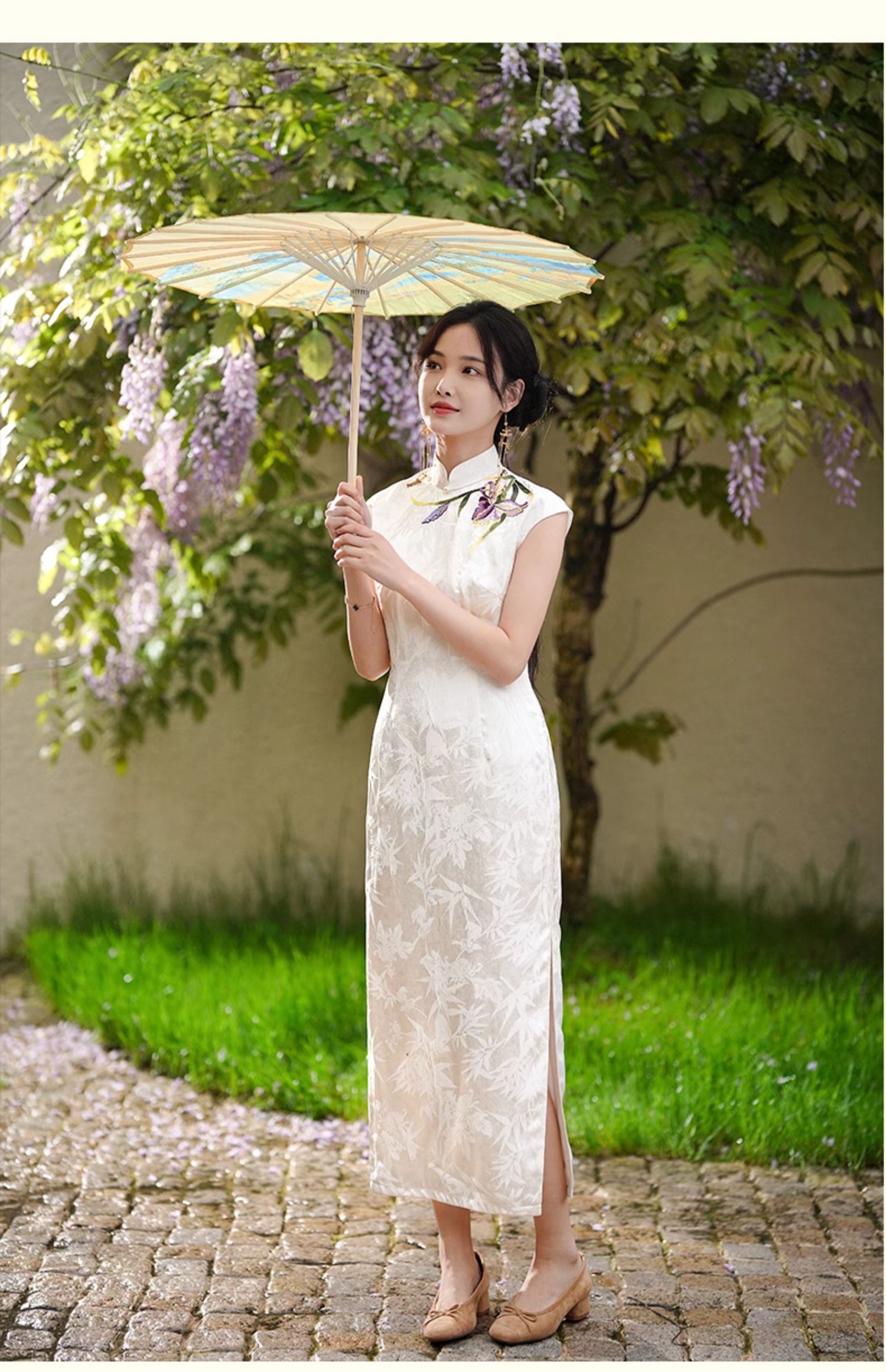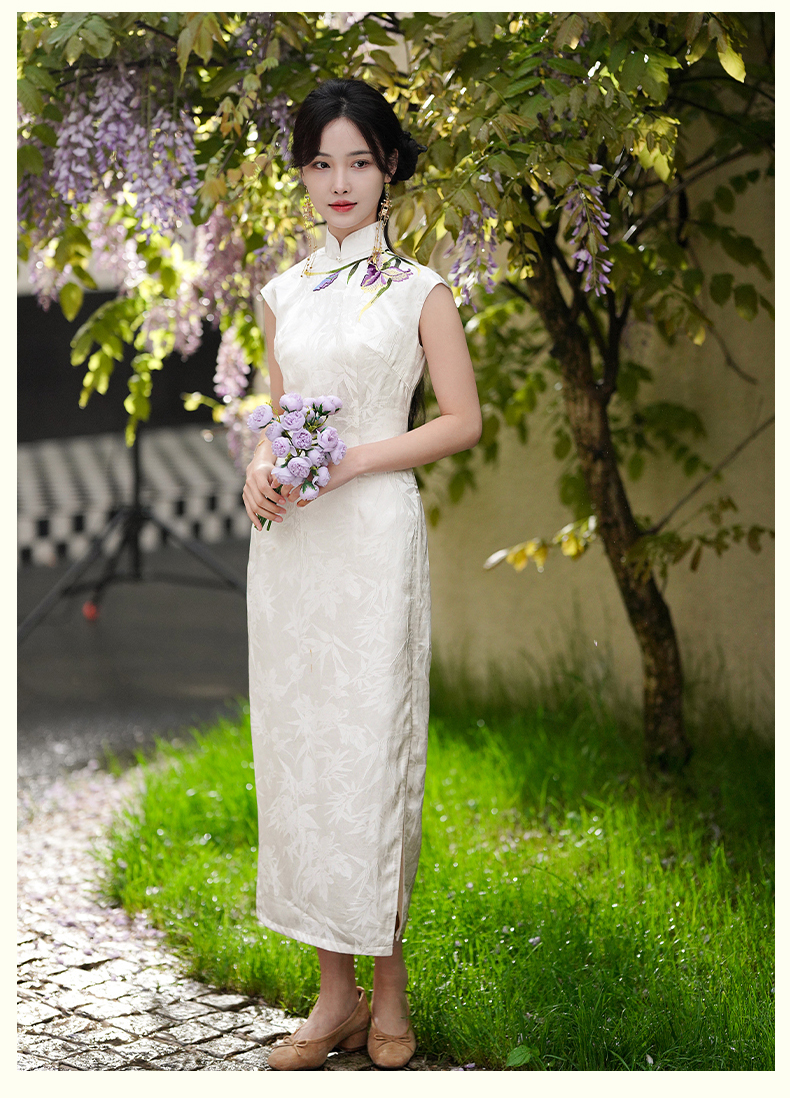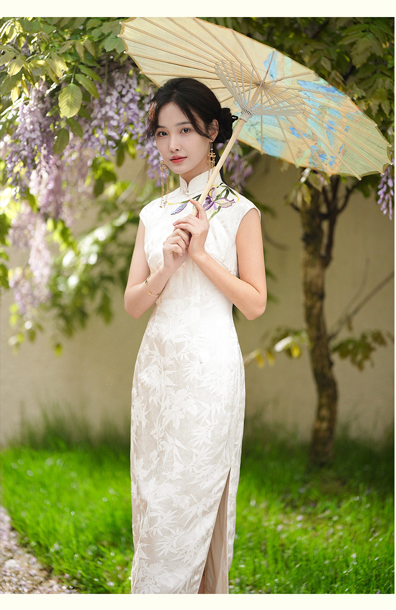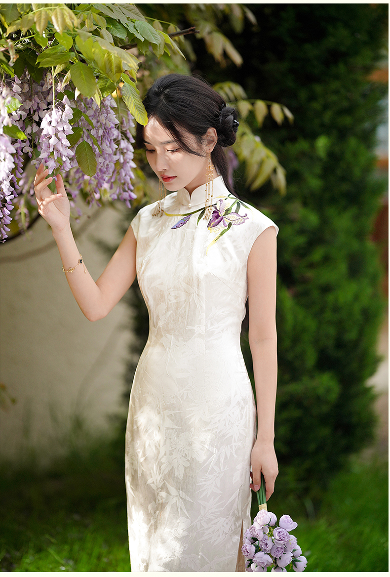 上海逸红颜瑾瑜2025年夏季新款小高订国风刺绣提花面料新中式旗袍