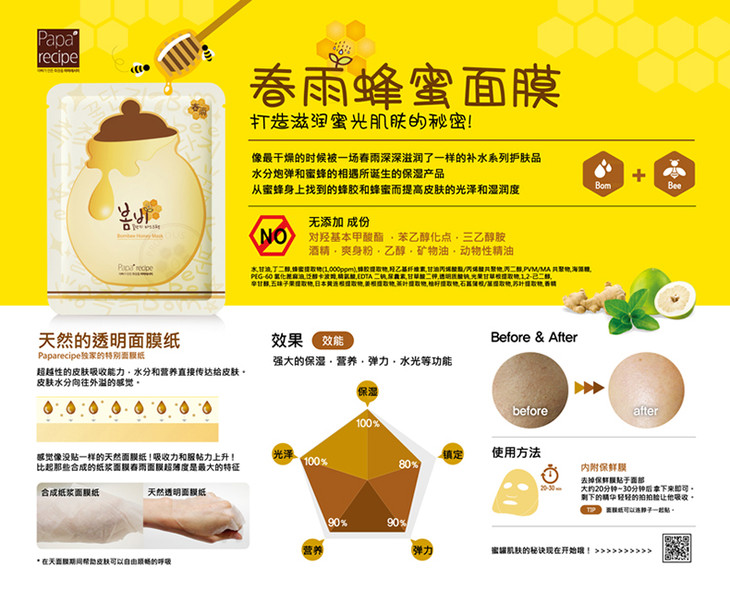 【保税区包邮直发】韩国 春雨 黄色蜜罐补水面膜 10片 补水提亮保湿