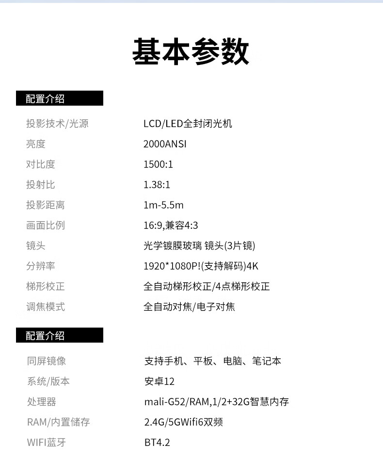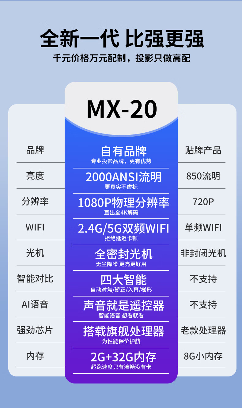 索飞MX-20 新款超高清投影仪家用办公投影机1080P 旗舰版 灰色