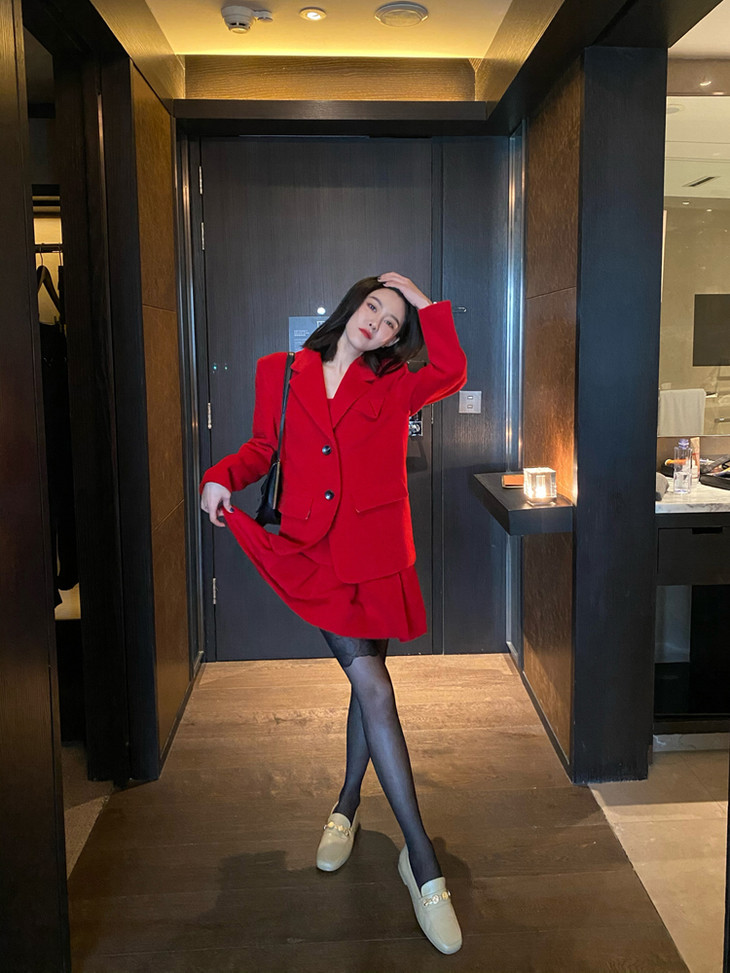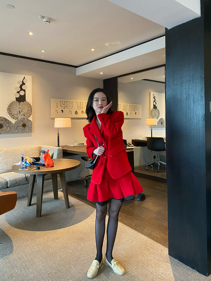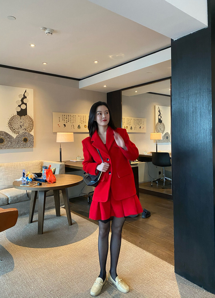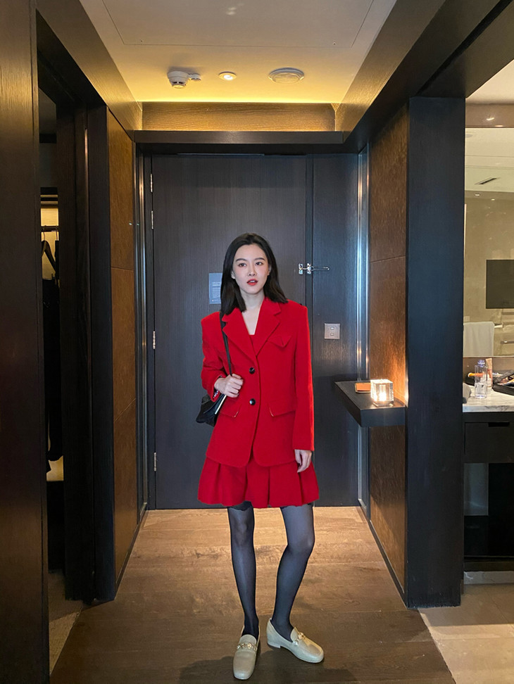 黑标樱花粉梨花白香nai儿风格百褶裙套装