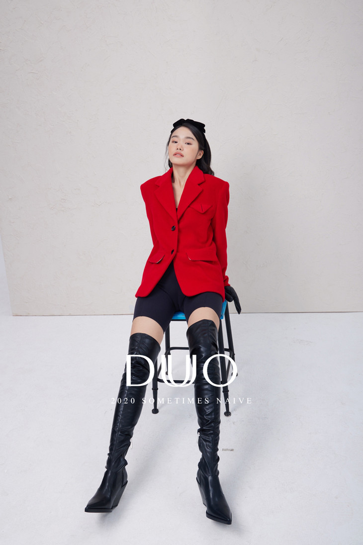 DUO智仙生 粉标塞维利亚胶囊羊毛小香风醋酸拼接连衣裙