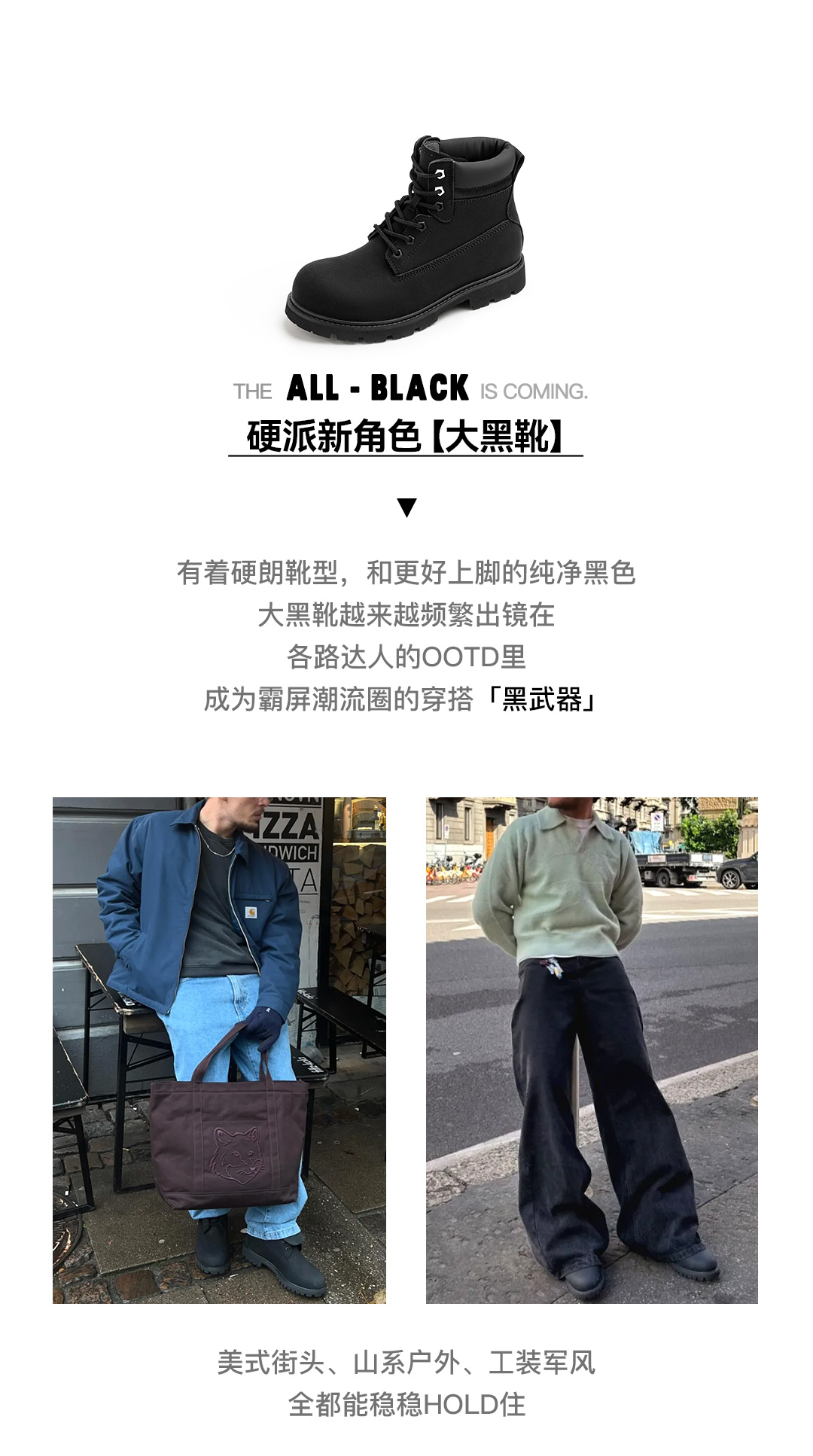 马登大黑靴男冬季新款棉鞋美式复古厚底工装靴户外休闲中帮马丁靴