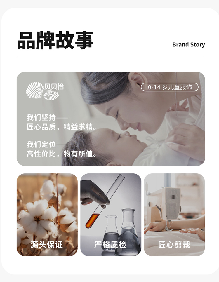 - 贝贝怡专注0-6岁婴幼儿服饰,坚持安全、柔软、舒适的产品理念,为千万中国家庭提供超高品质、安全可靠的婴幼儿服饰产品,妈妈放心,宝宝开心!