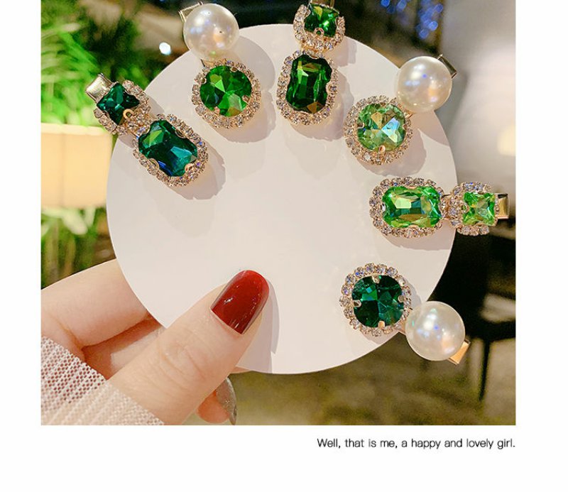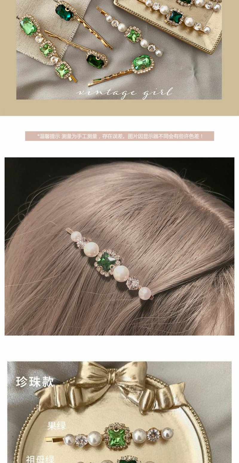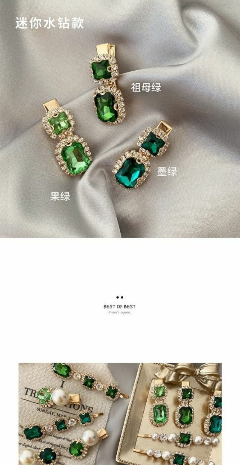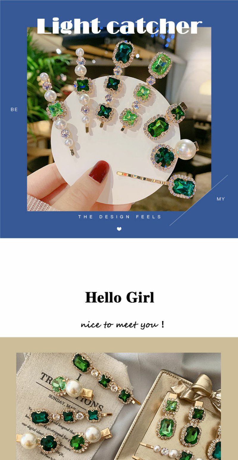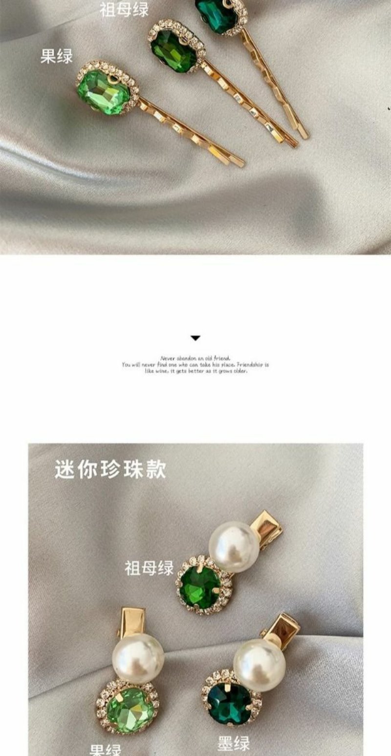 【3-5个装】复古绿色系发夹轻奢水钻珍珠刘海夹女一字夹网红发饰边夹韩国头饰
