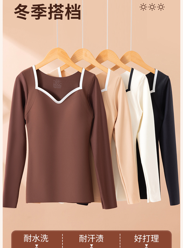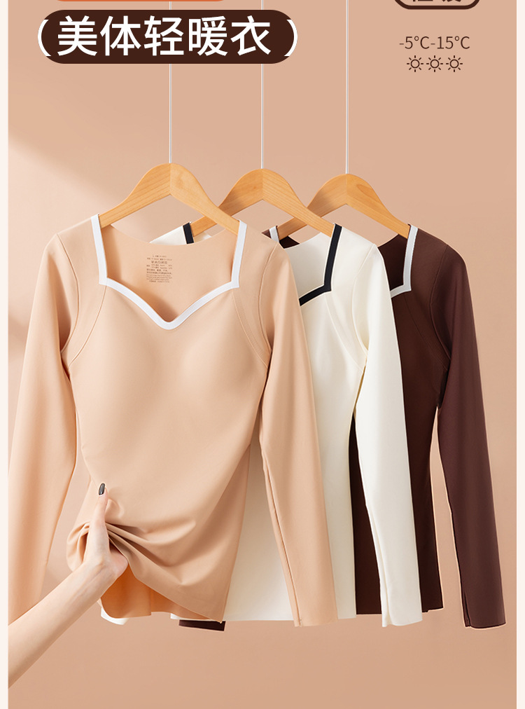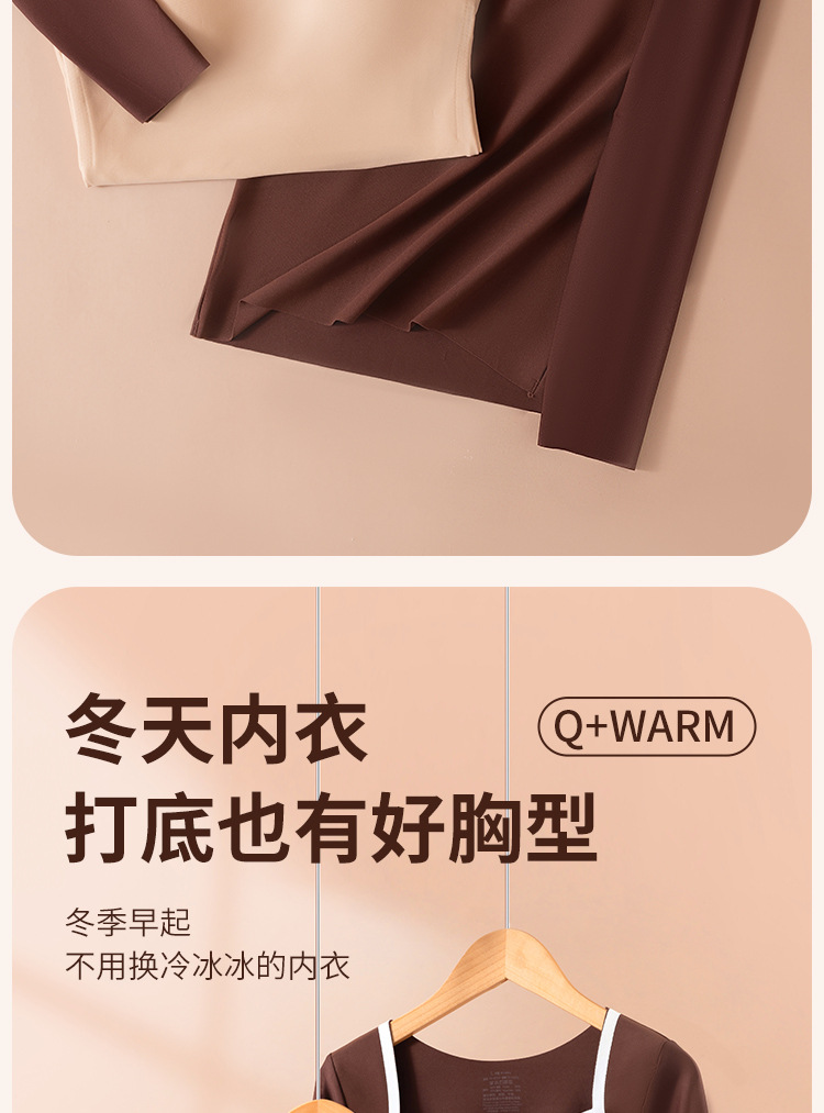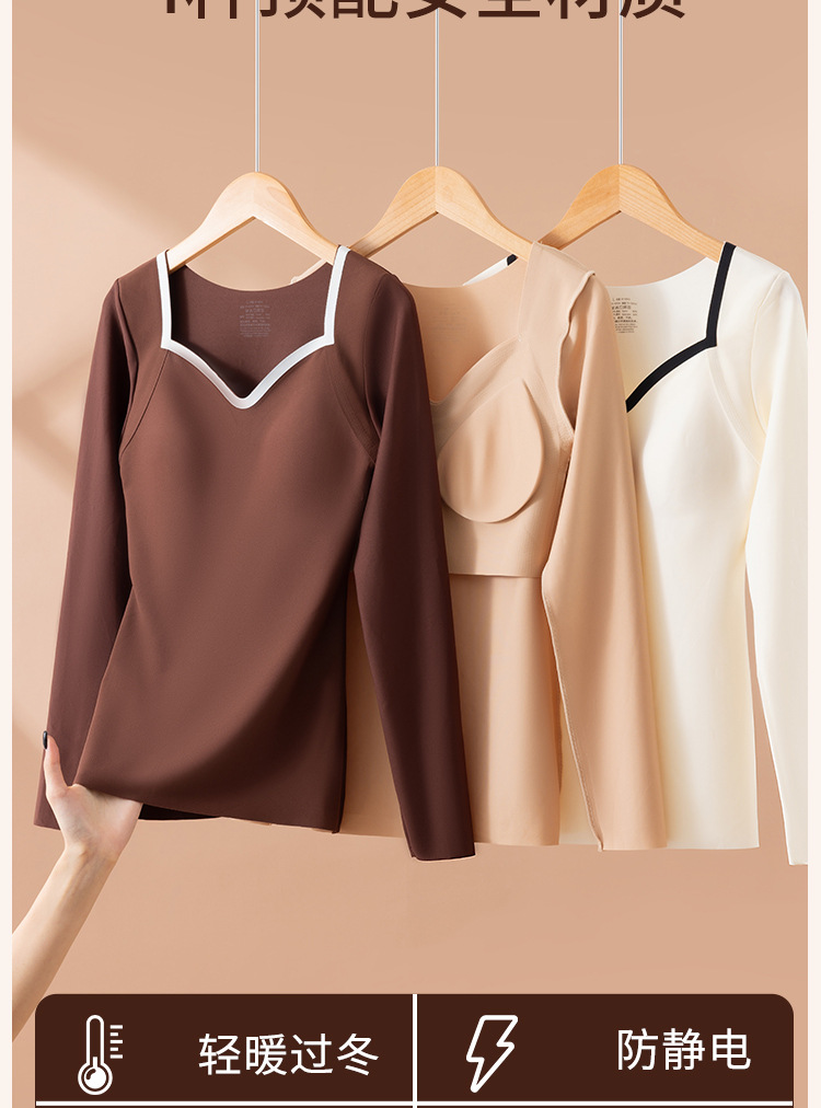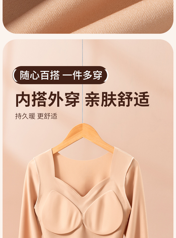 【速拍!到手2件美体衣!】秋冬打底保暖内衣 女高品质撞色女无痕带胸垫可外穿保暖长袖 美肤衣