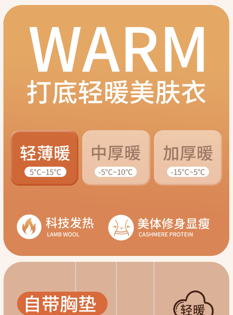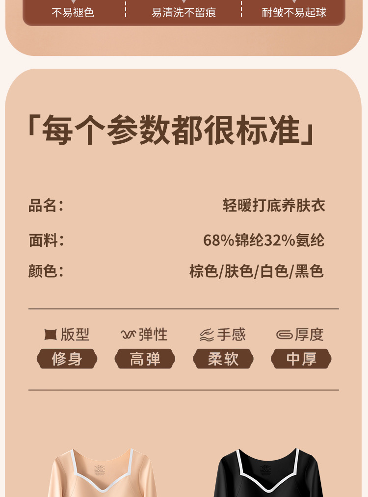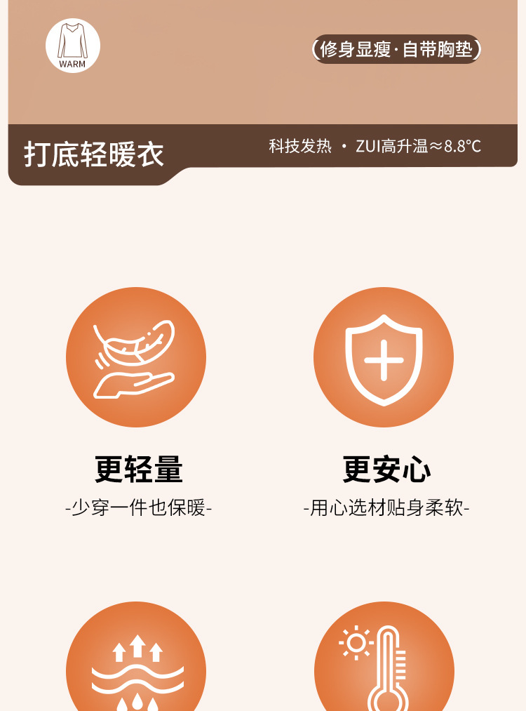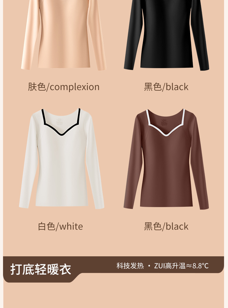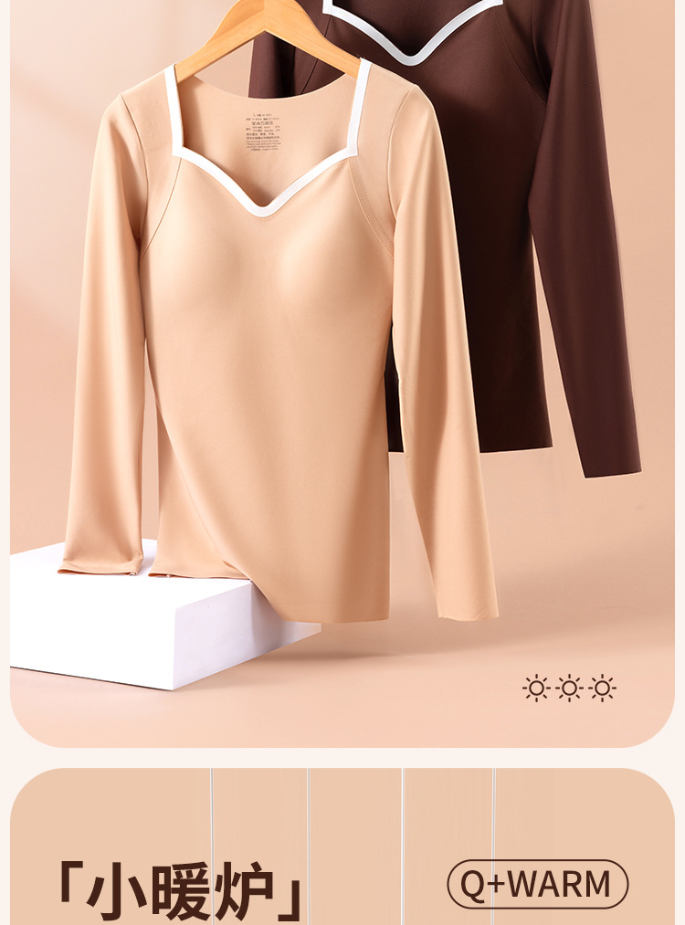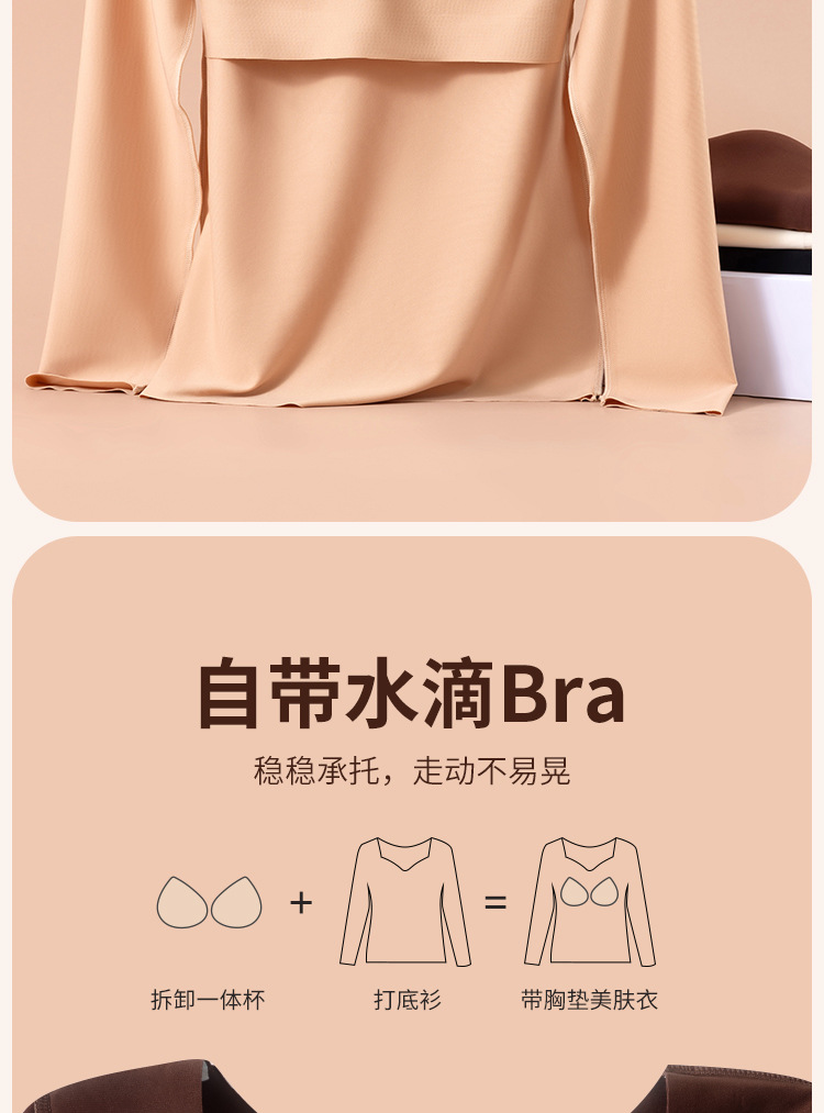【速拍!到手2件美体衣!】秋冬打底保暖内衣 女高品质撞色女无痕带胸垫可外穿保暖长袖 美肤衣