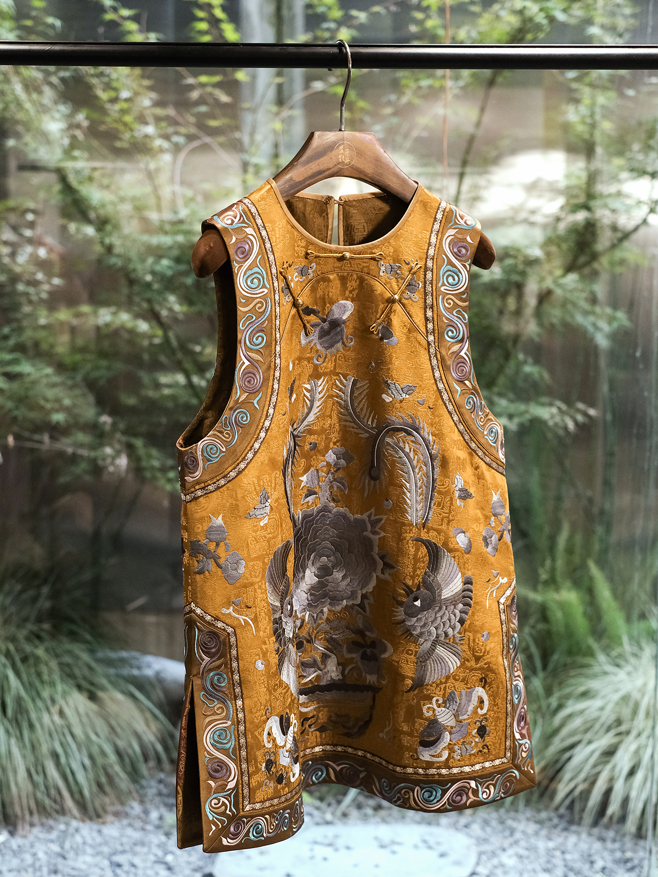 盛唐牡丹盛奢系列 | 真丝香云纱手推绣马甲-橙色