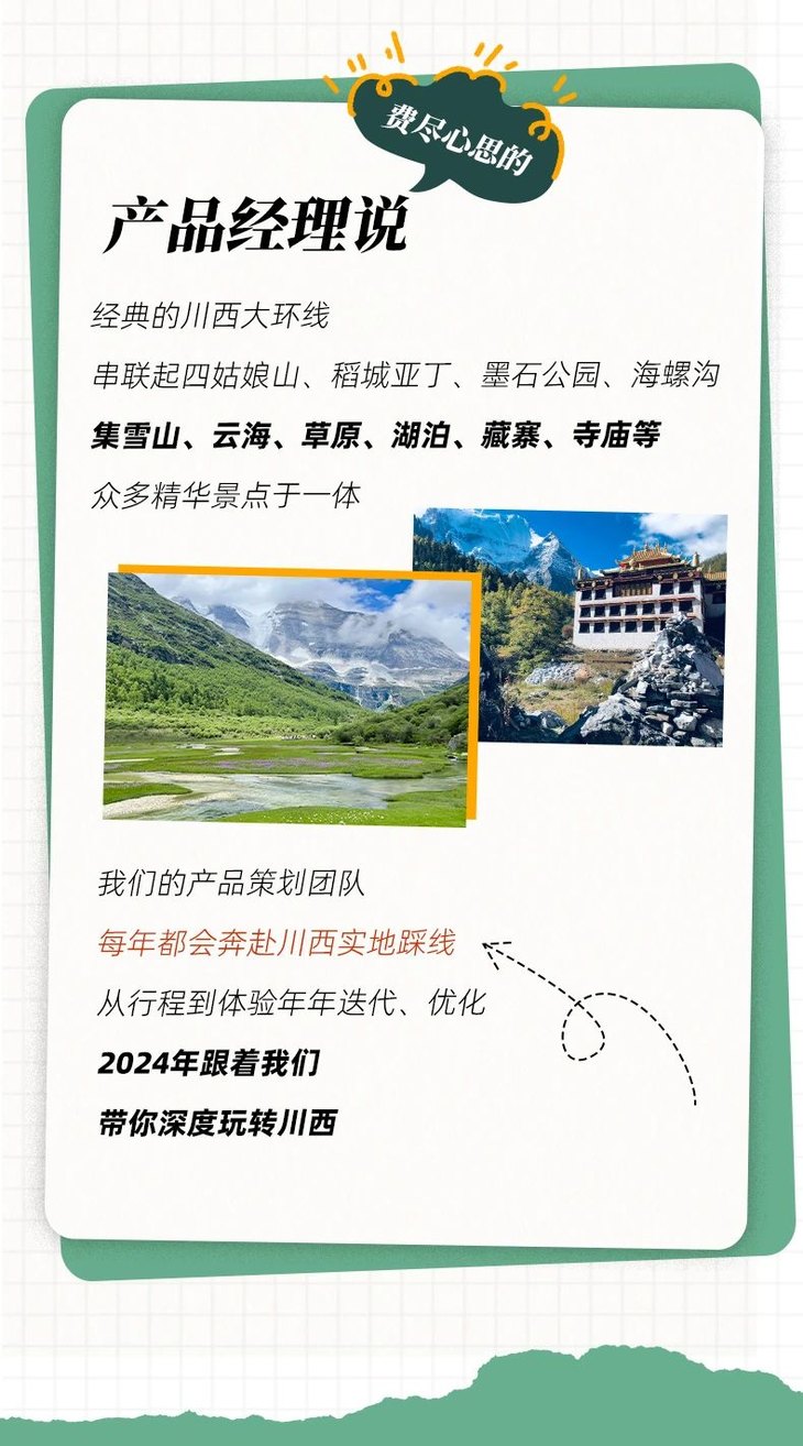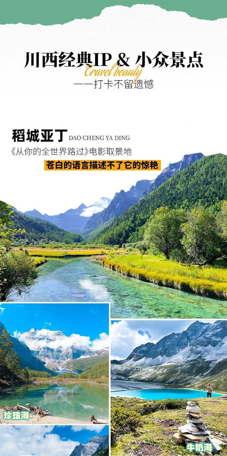 【大美稻亚·8日】2024经典川西大环线 稻城亚丁+四姑娘山双桥沟+海螺沟+墨石公园+理塘+甲居藏寨+泸定桥8日深度游