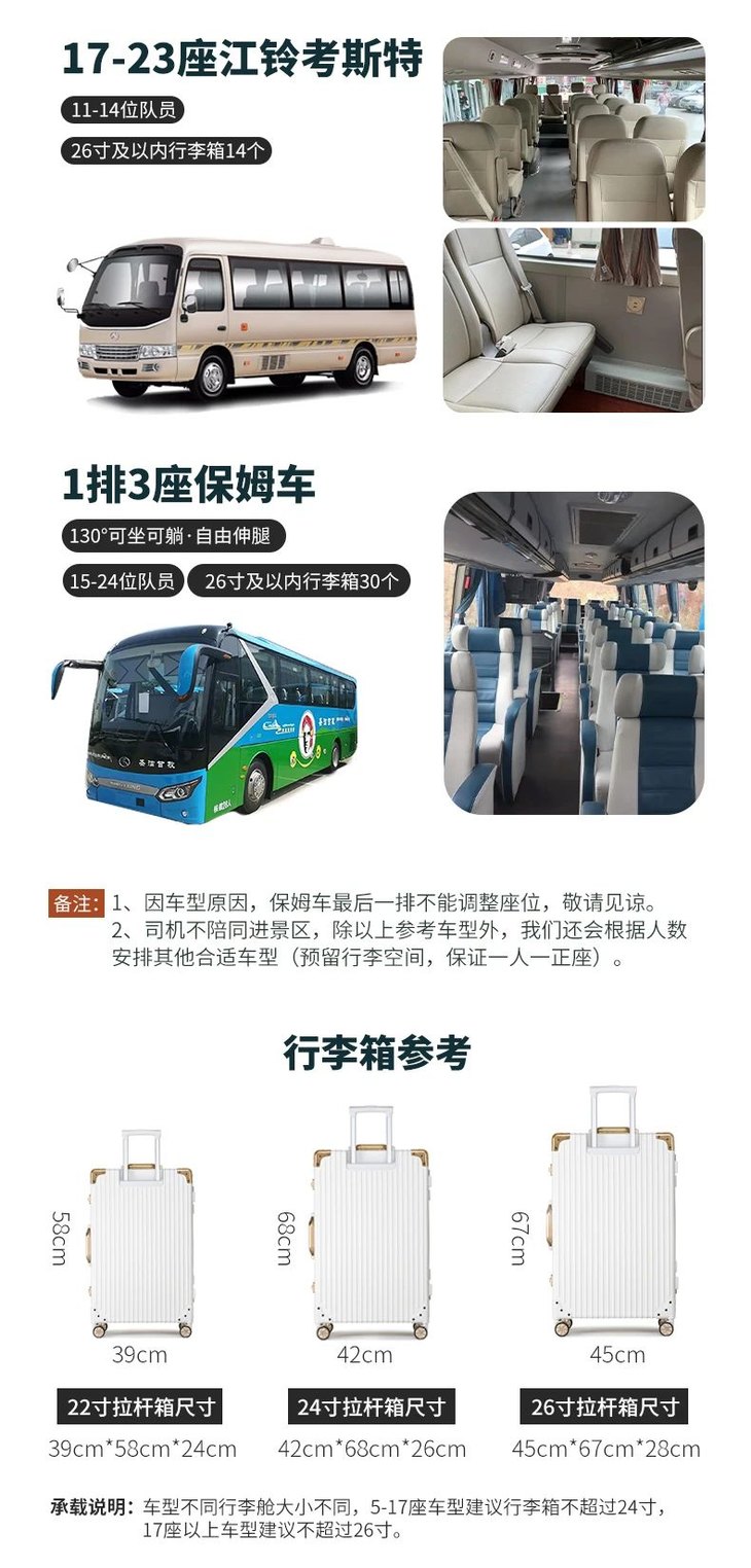 1、交通:根据人数确定车辆,15人即升级保姆车(已含驾驶员食宿);