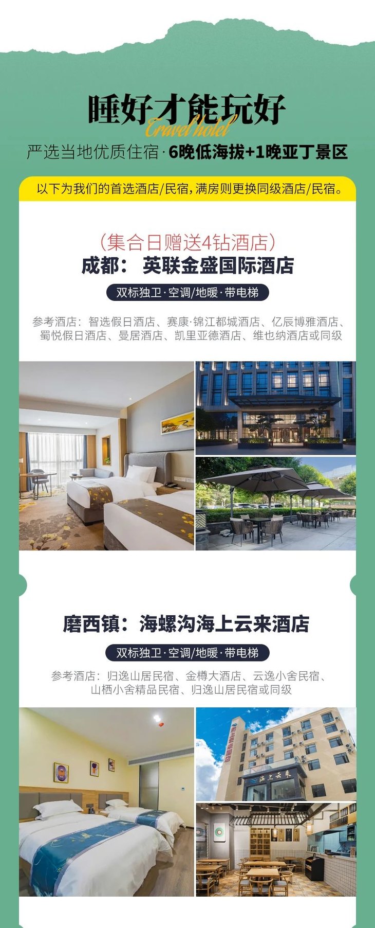 (3)如遇个别酒店,没有电梯和提行李服务,敬请自理;