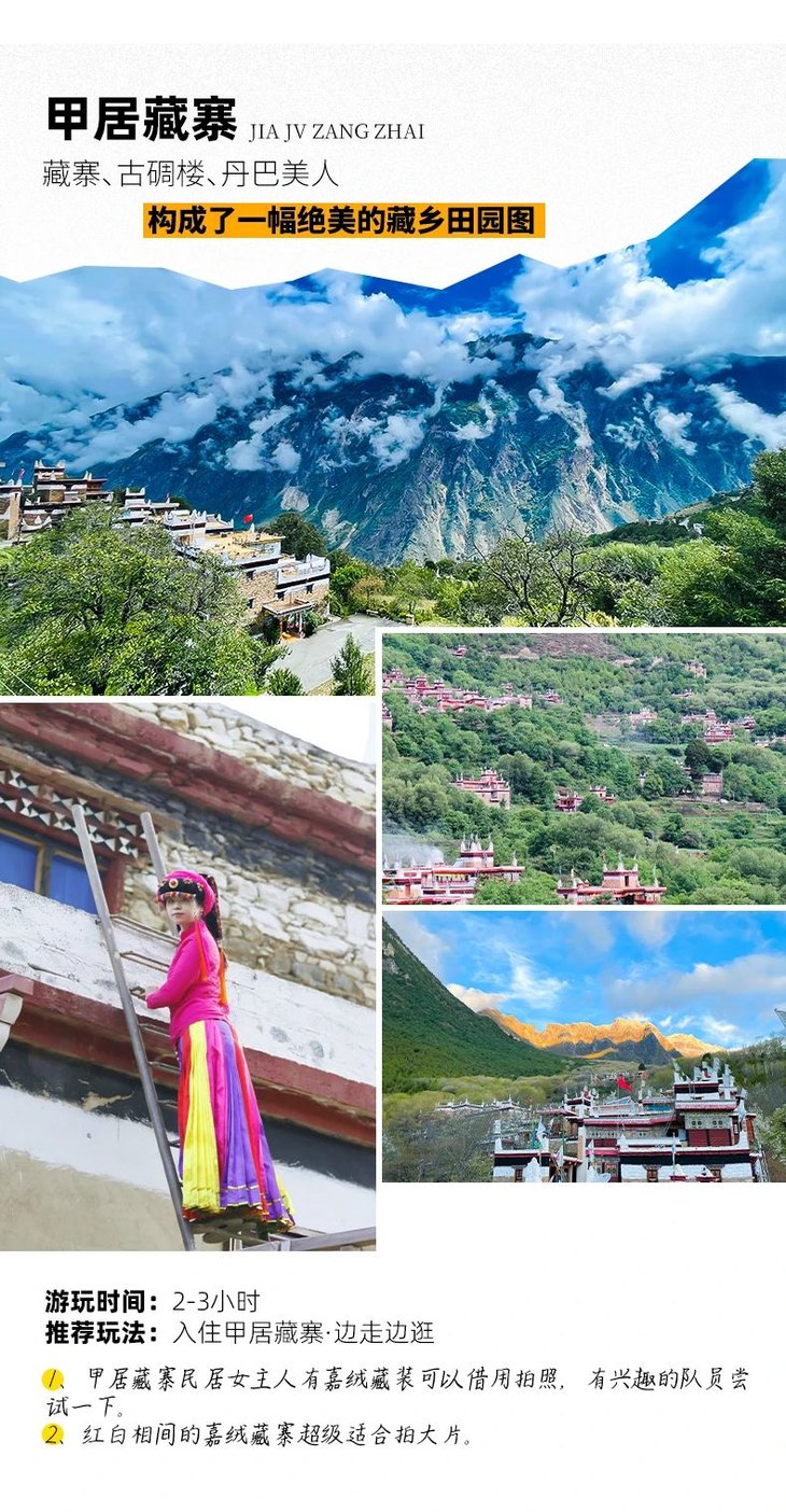 (2)藏地人文体验:挂经幡、撒隆达、甲居藏家主人献哈达、喝酥油茶、围着篝火跳锅庄;