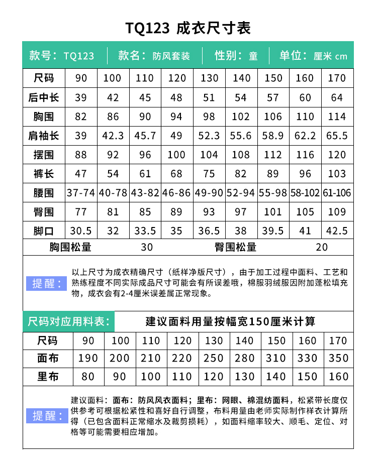 裁缝学苑TQ123连帽防风外套套装纸样儿童男女童上衣裤子两件套样板