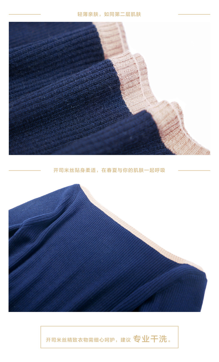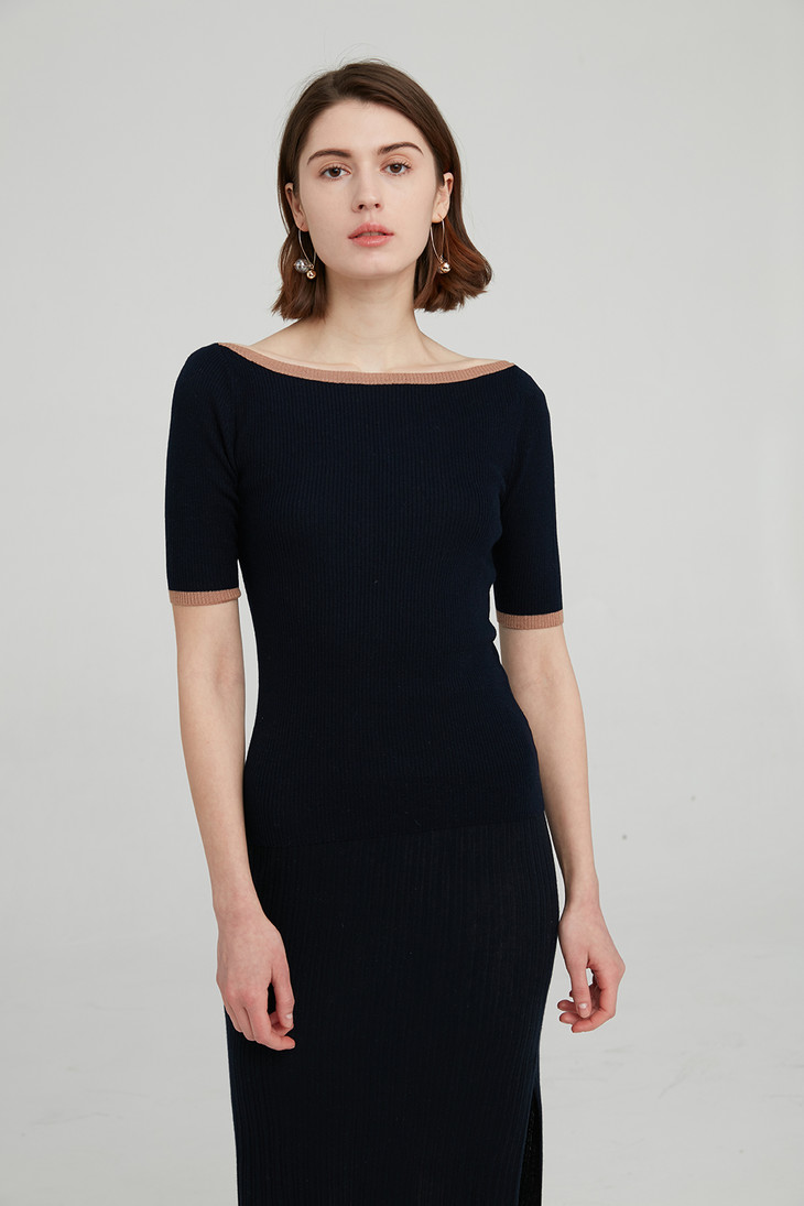 开司米丝 一字领五分袖撞色罗纹衫