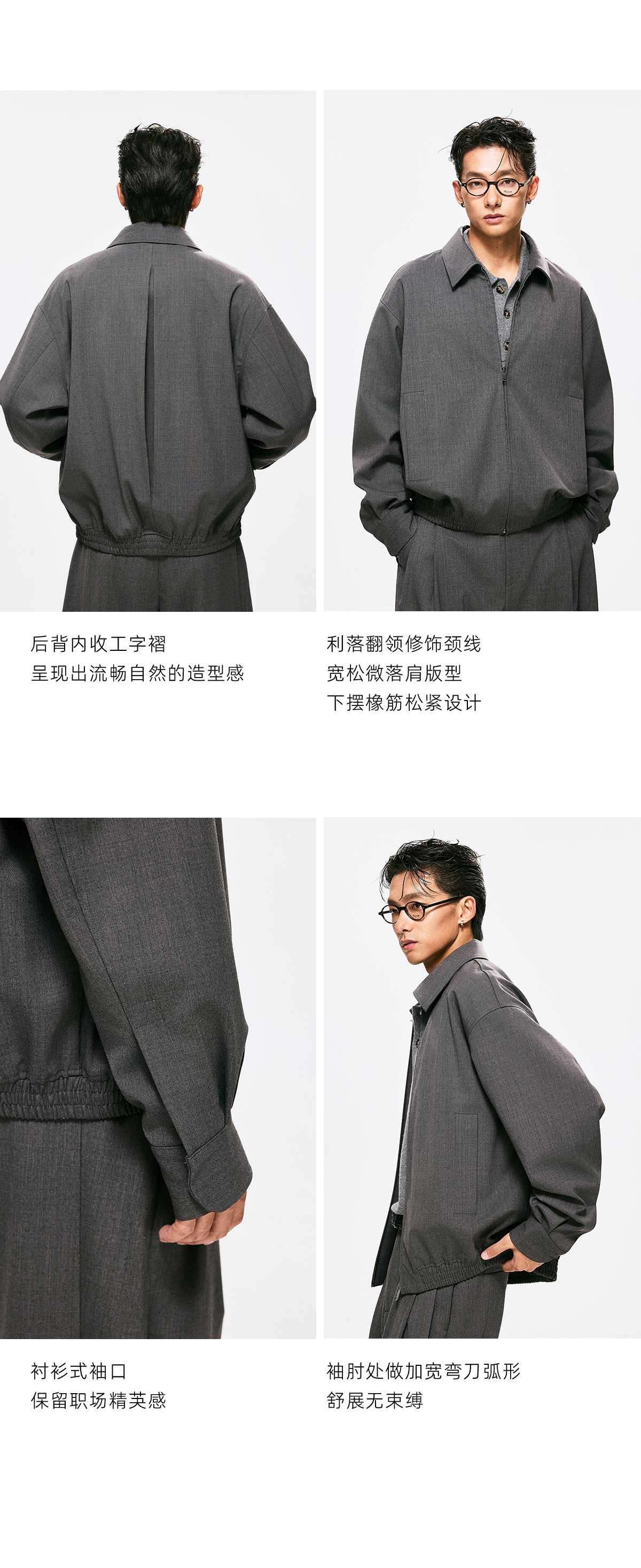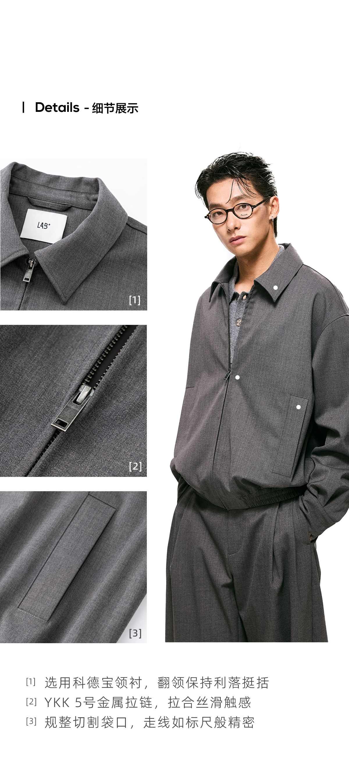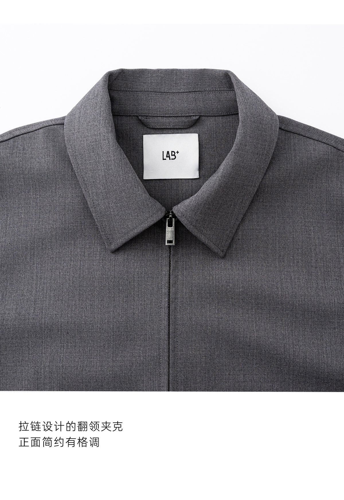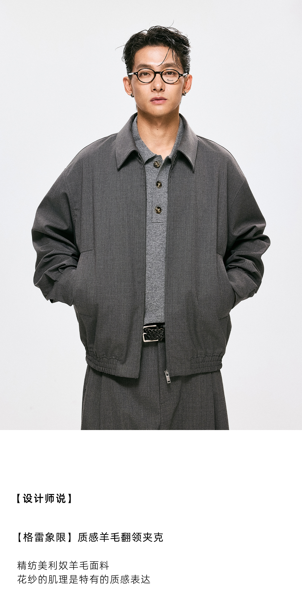 棉仓3661011003-【格雷象限】精纺美利奴羊毛翻领夹克极简风