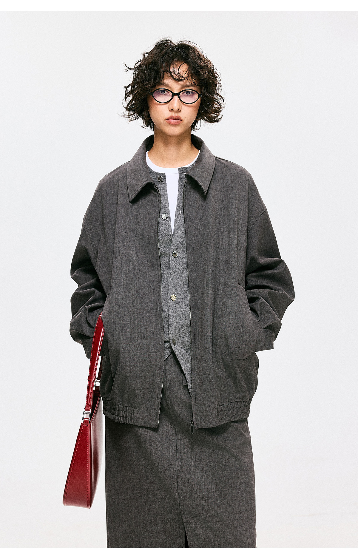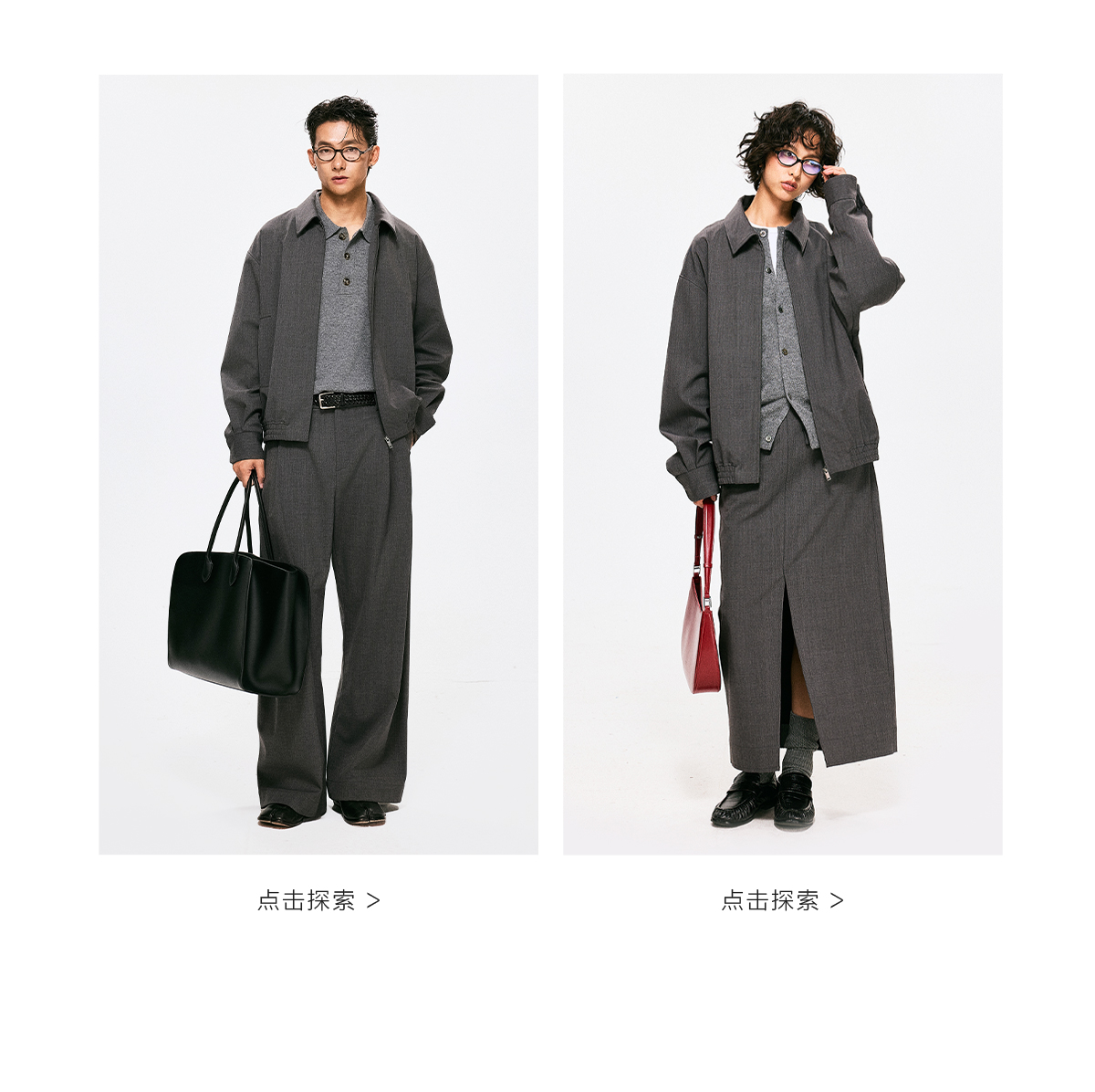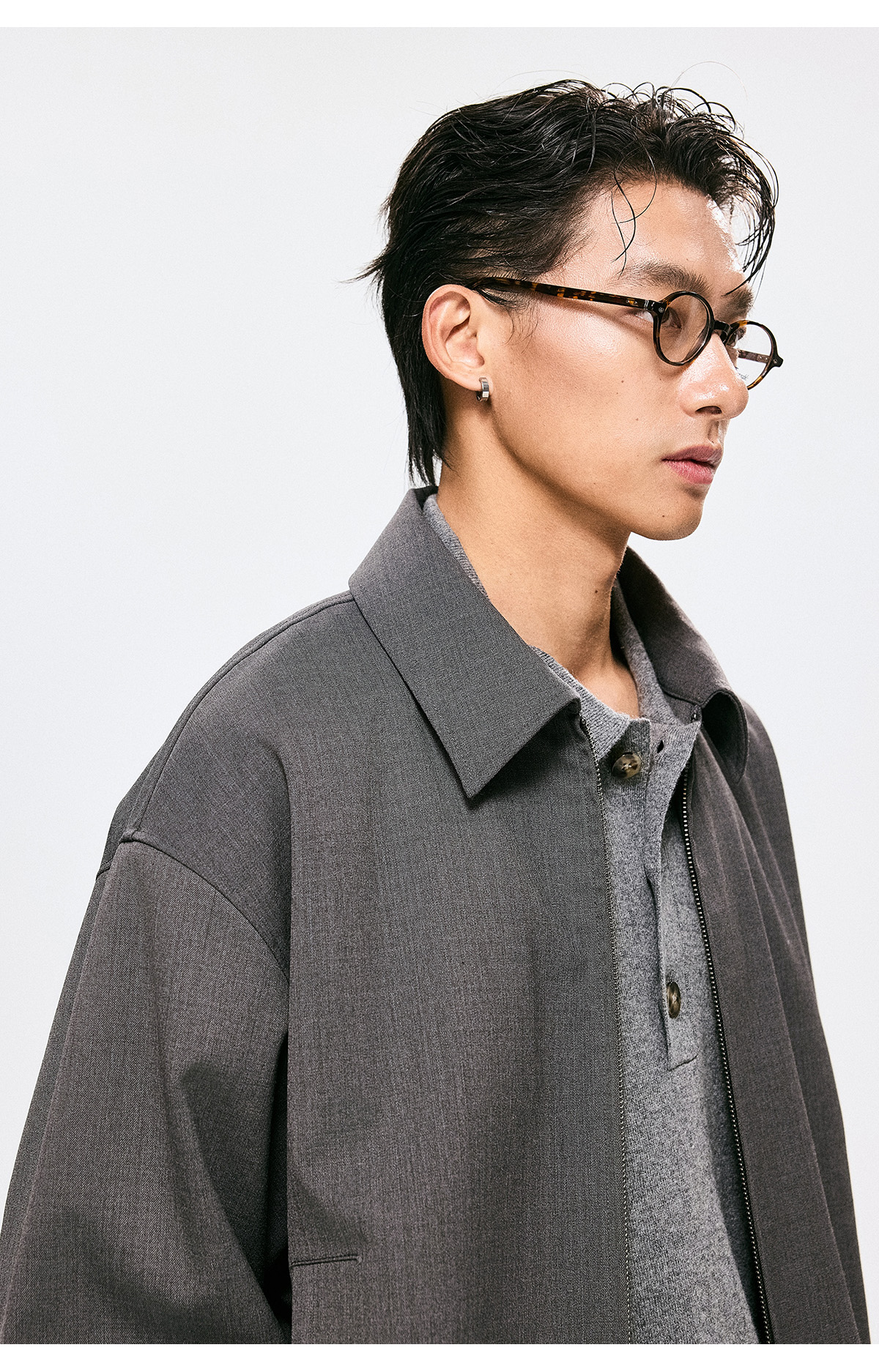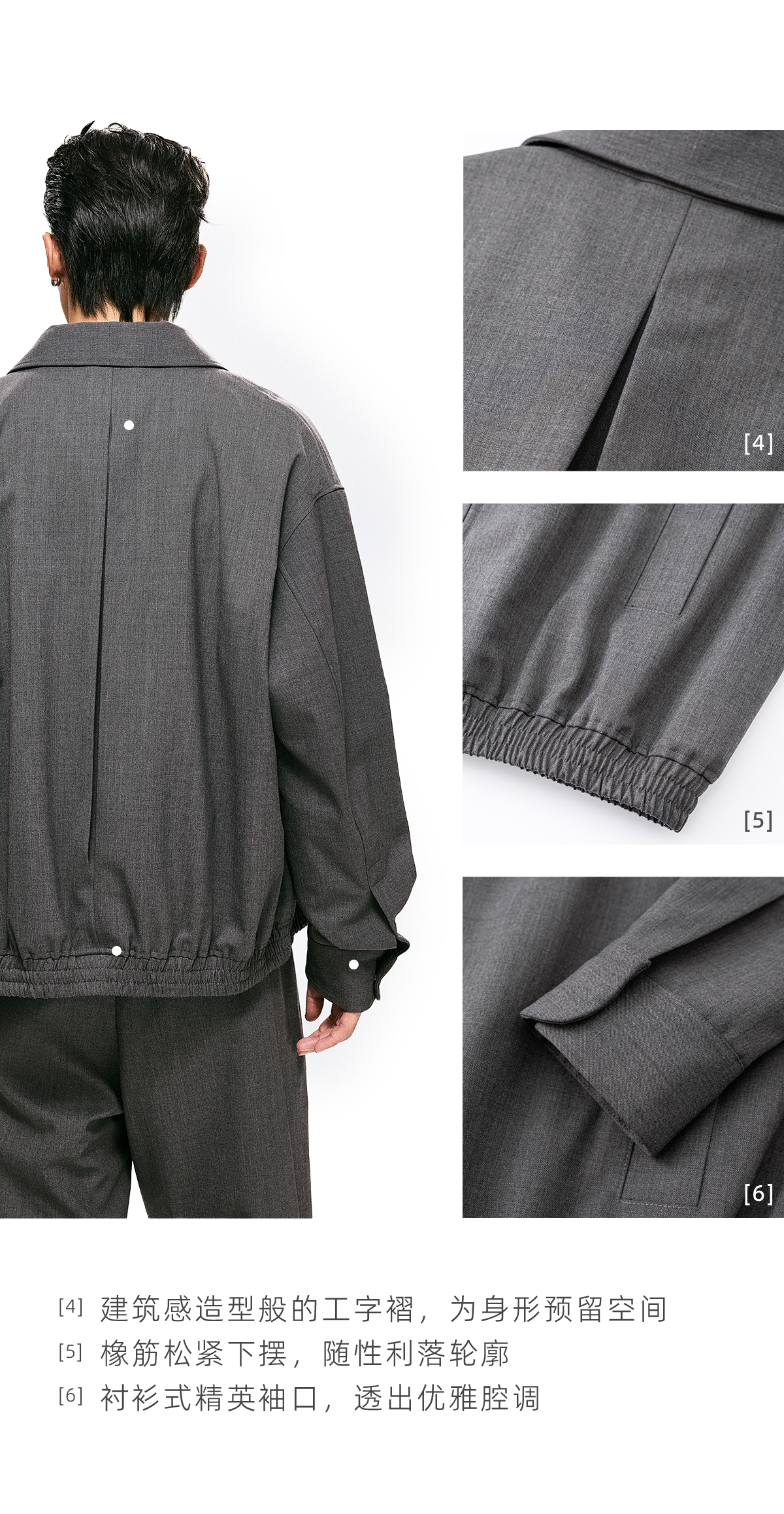 棉仓3661011003-【格雷象限】精纺美利奴羊毛翻领夹克极简风