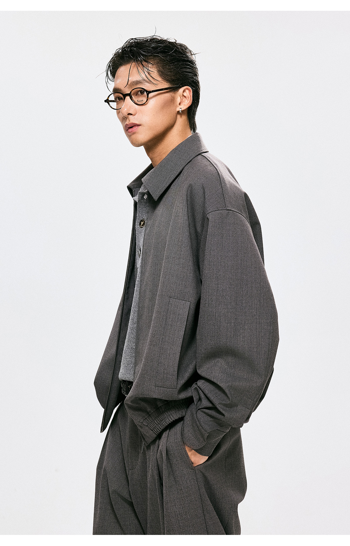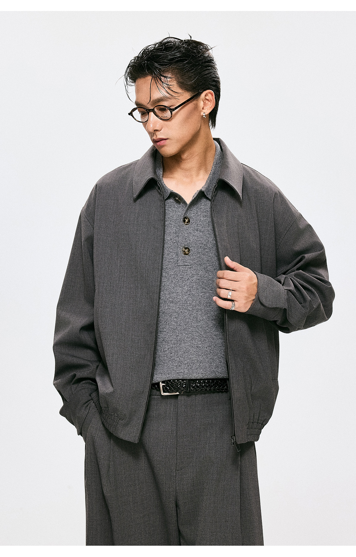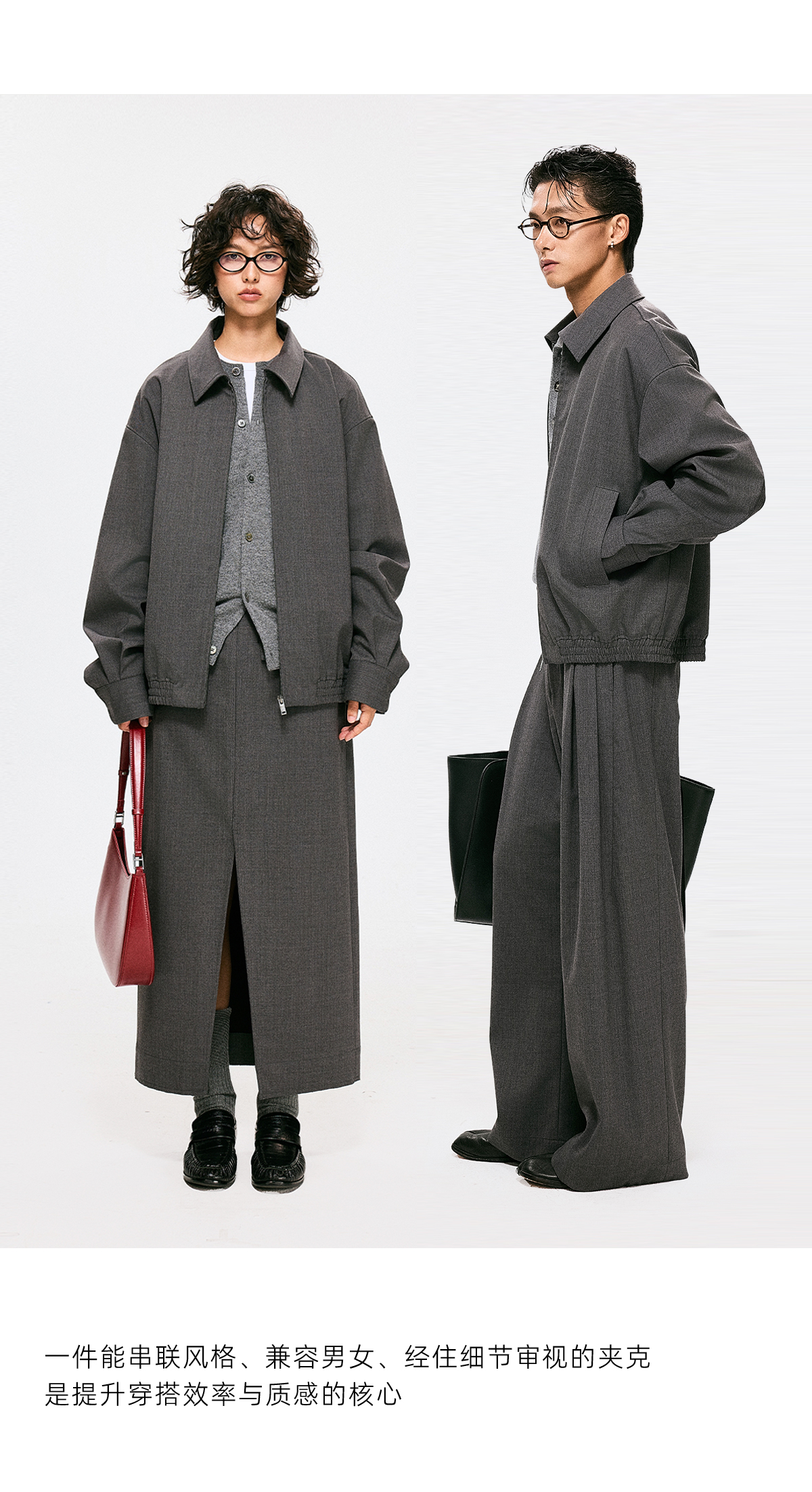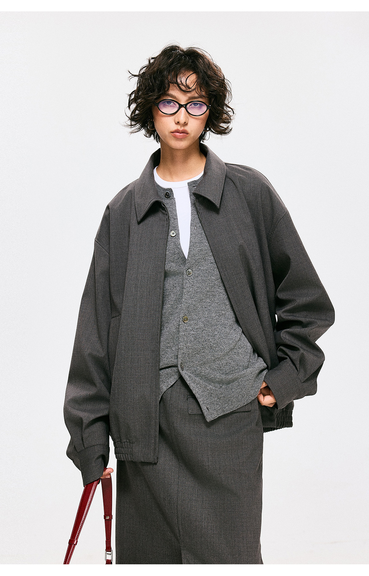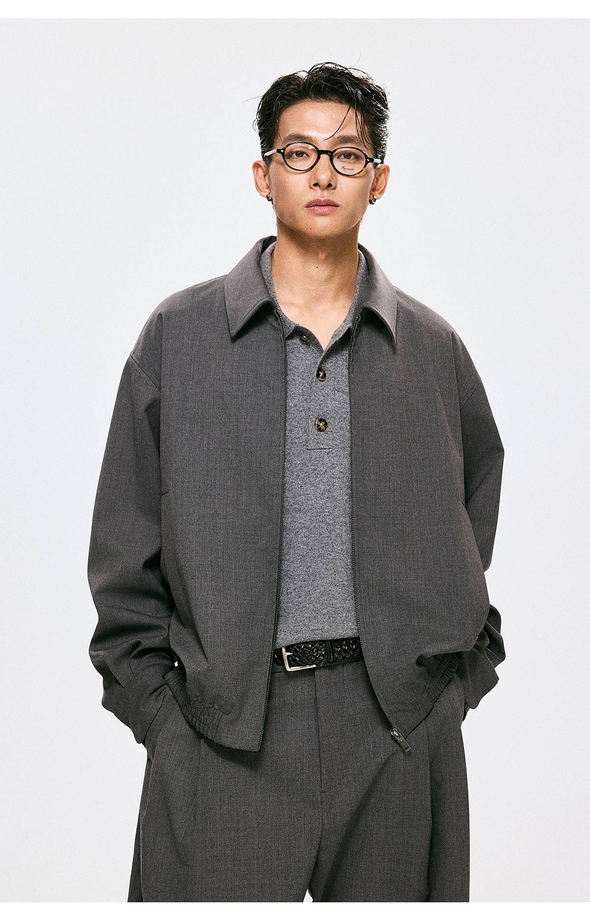 棉仓3661011003-【格雷象限】精纺美利奴羊毛翻领夹克极简风