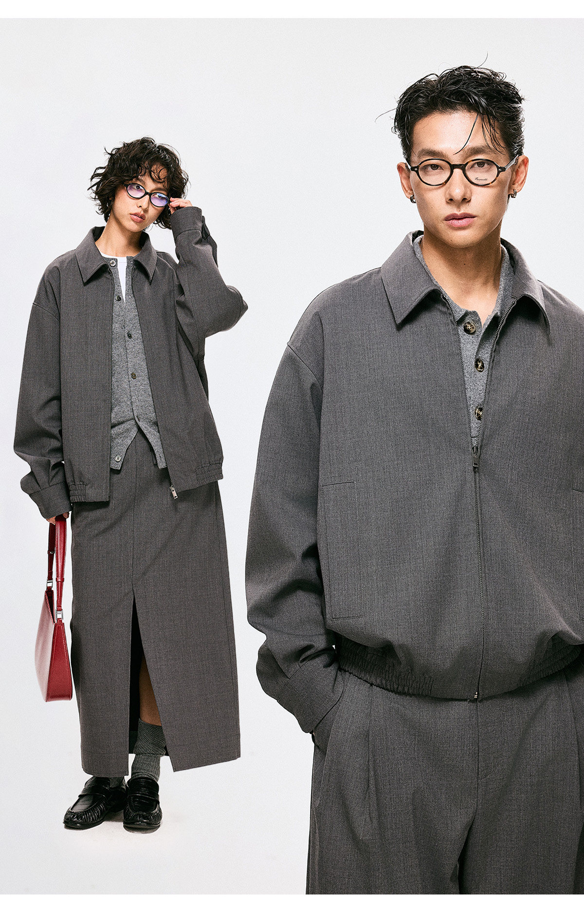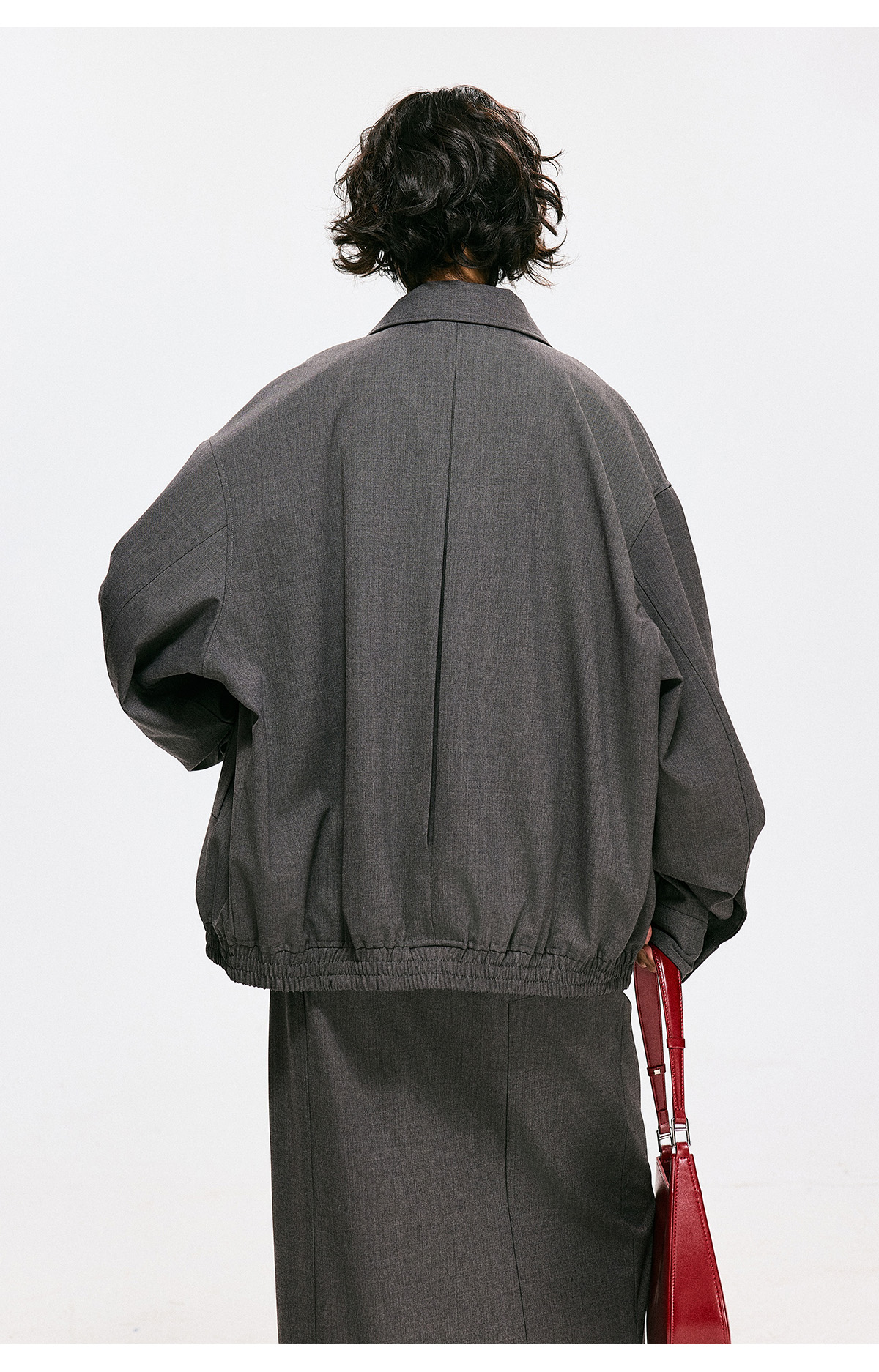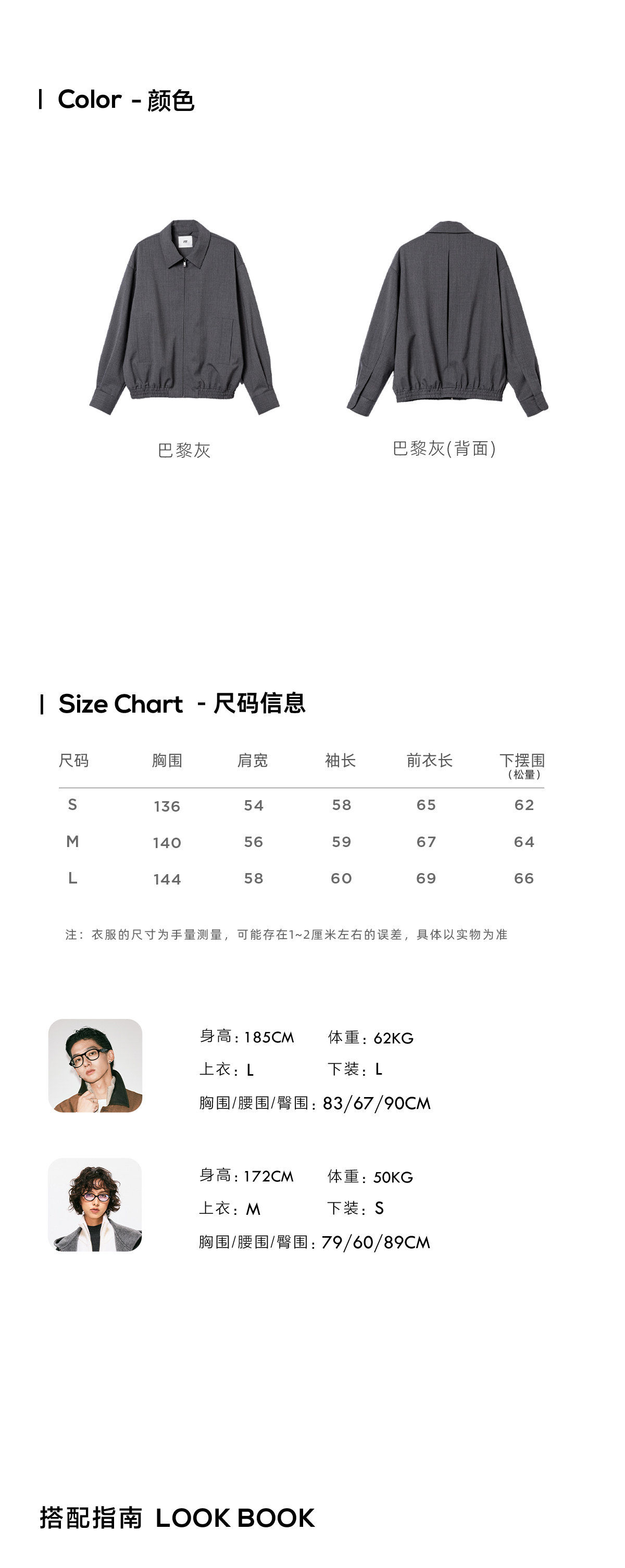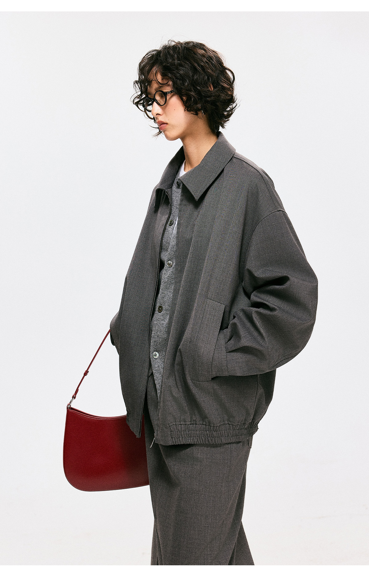 棉仓3661011003-【格雷象限】精纺美利奴羊毛翻领夹克极简风