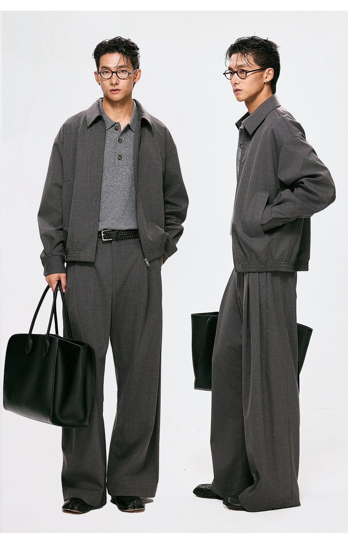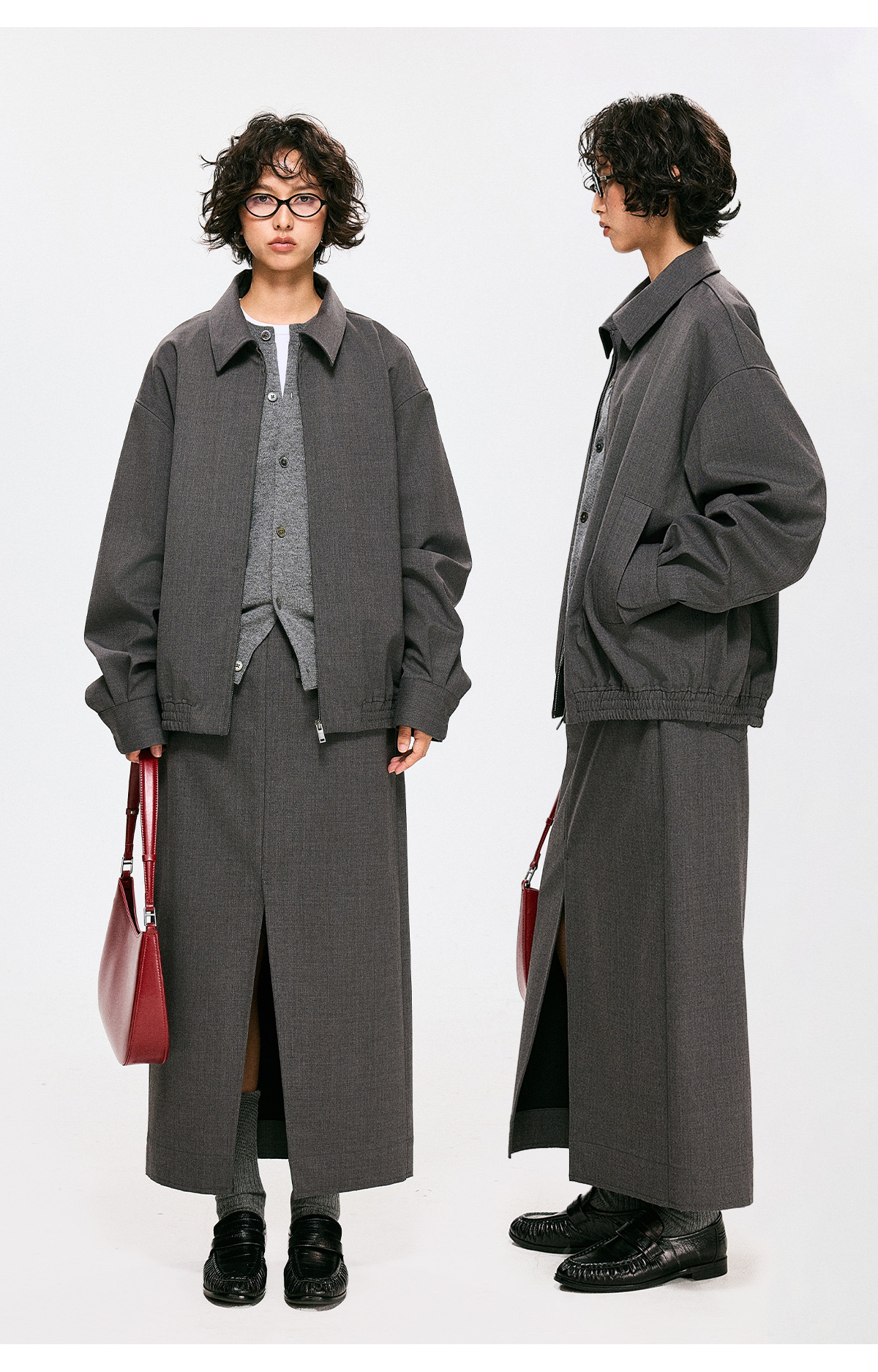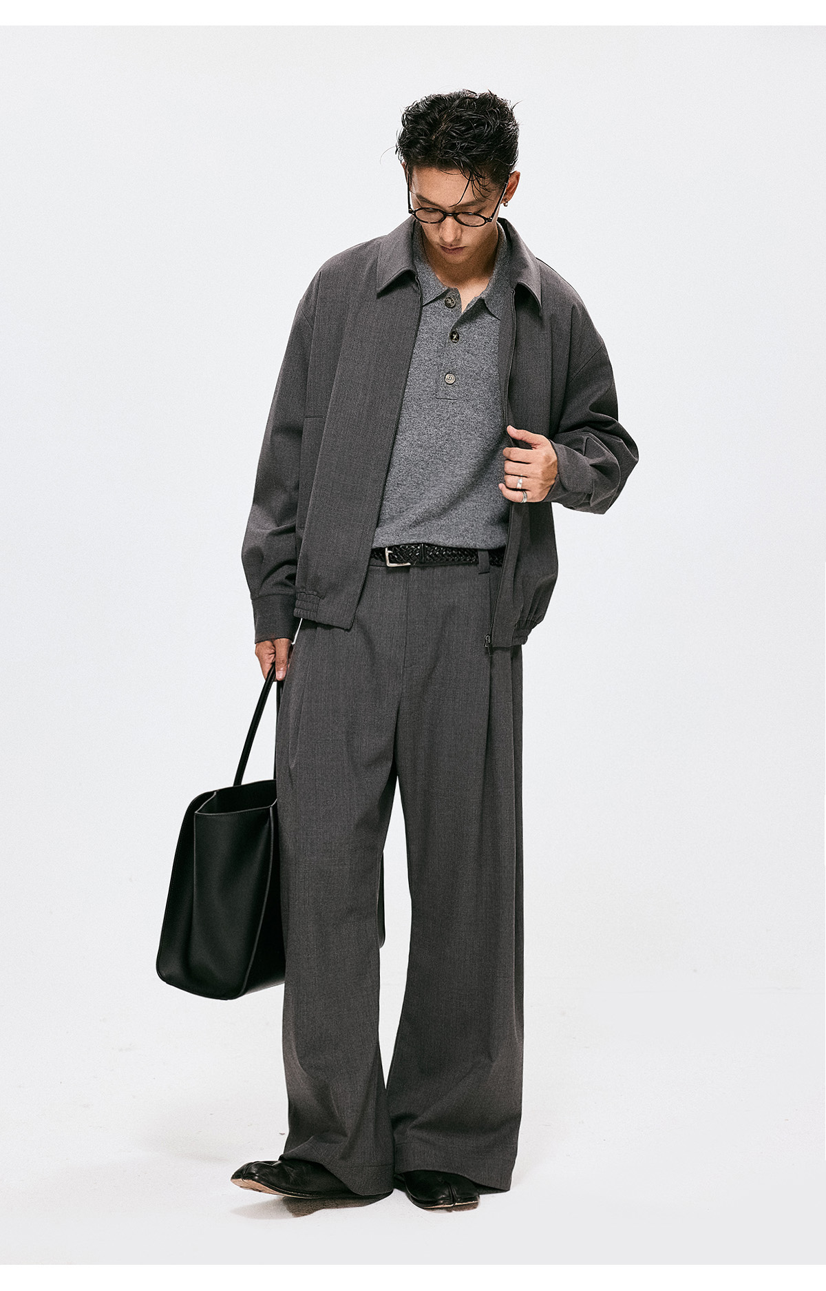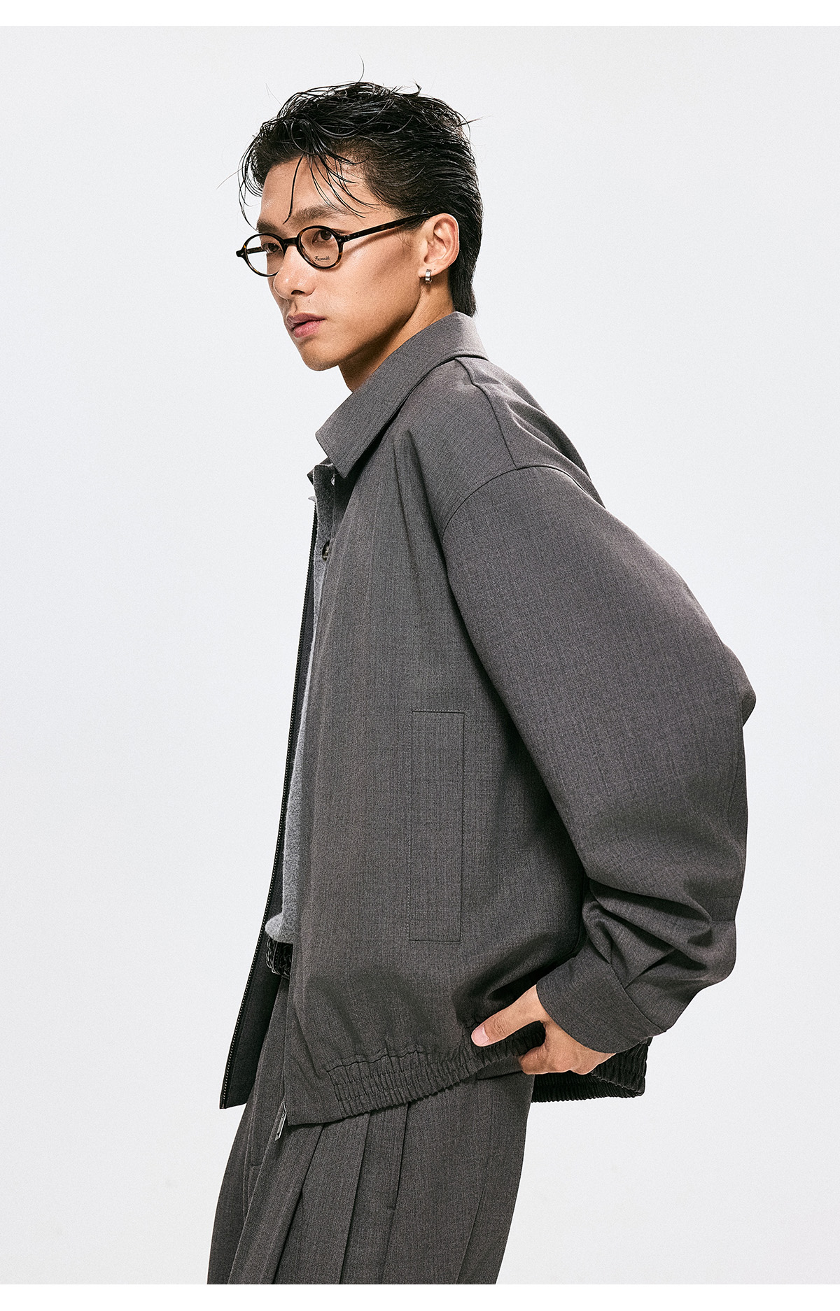 棉仓3661011003-【格雷象限】精纺美利奴羊毛翻领夹克极简风