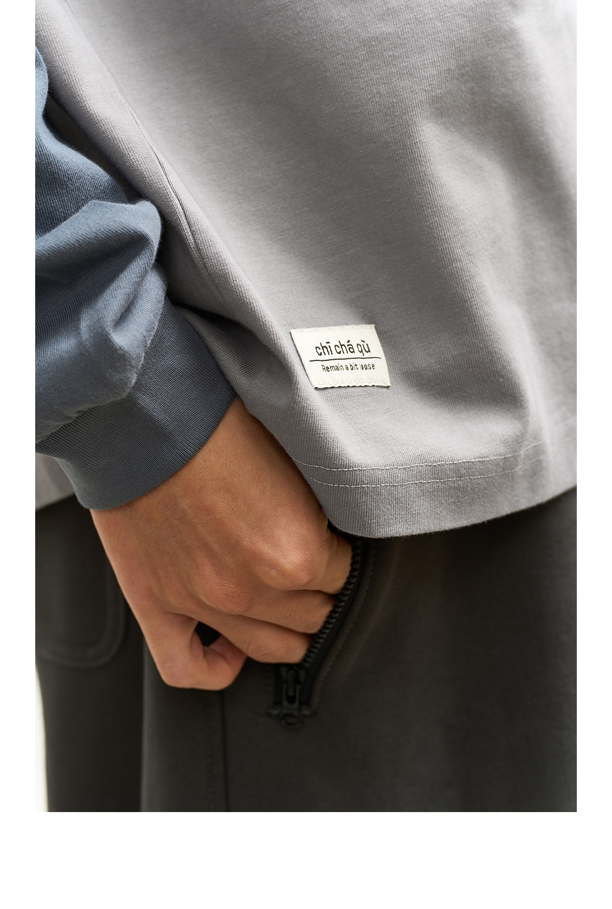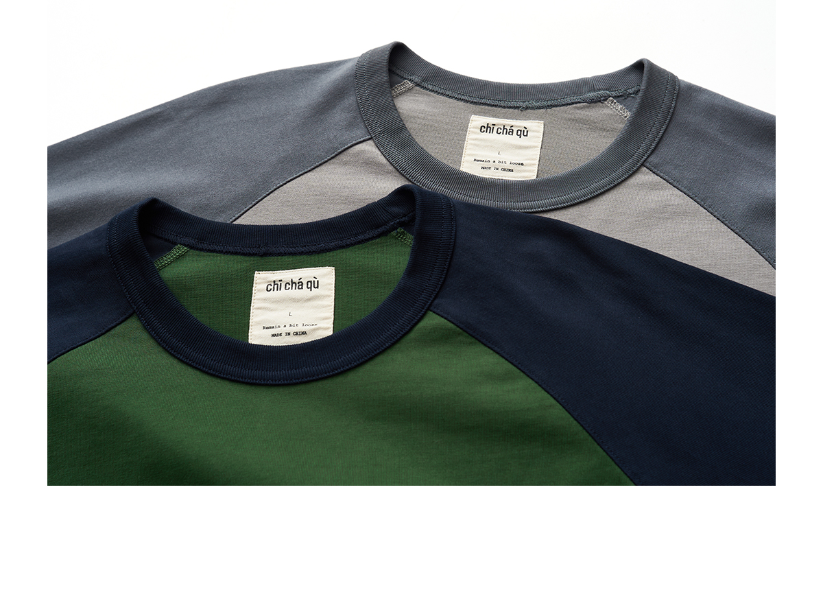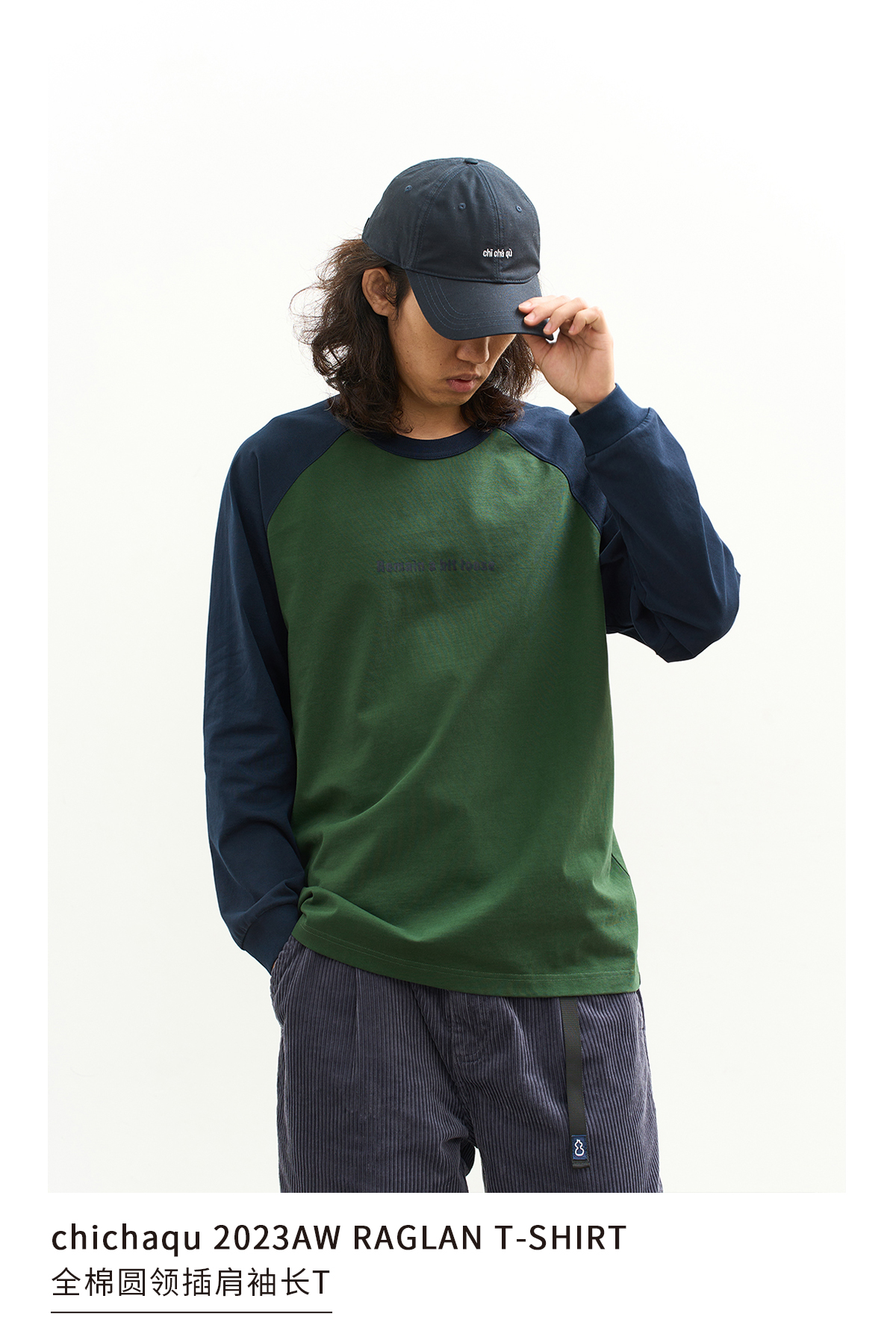 吃茶去chichaqu全棉圆领印花插肩长袖T恤