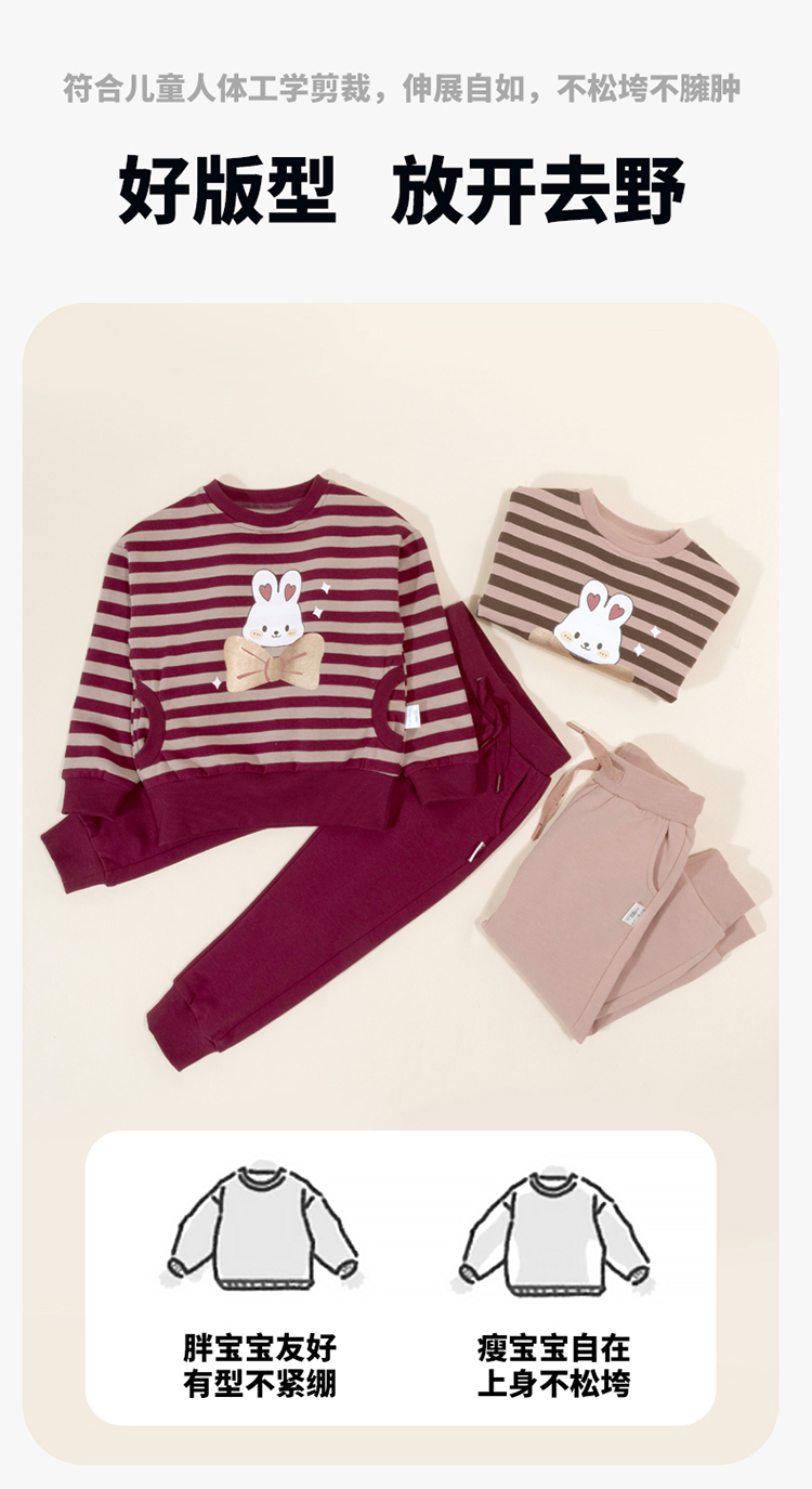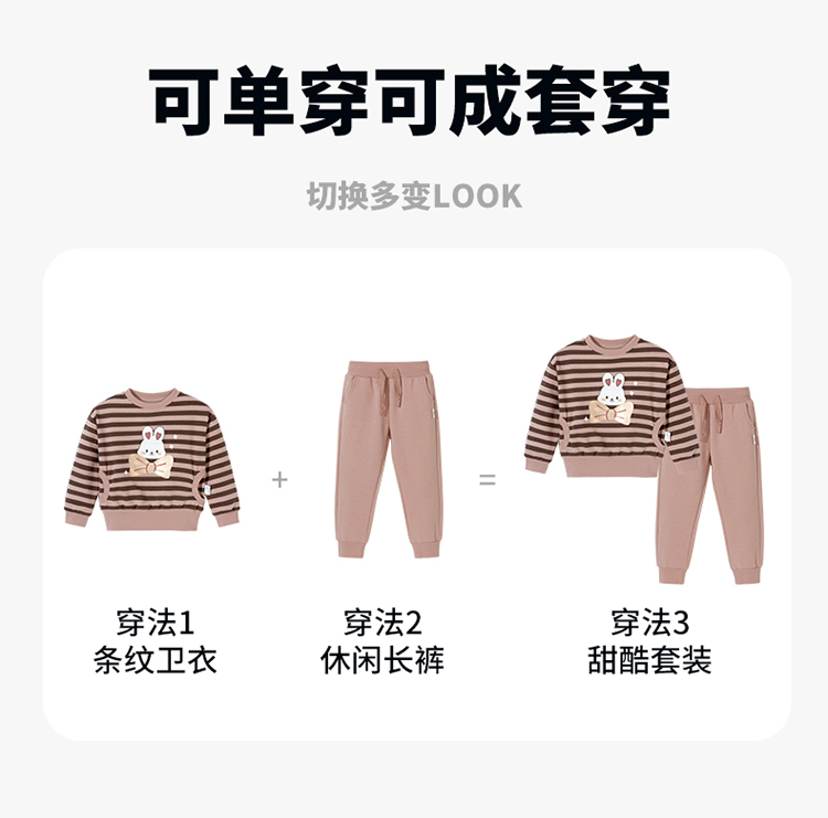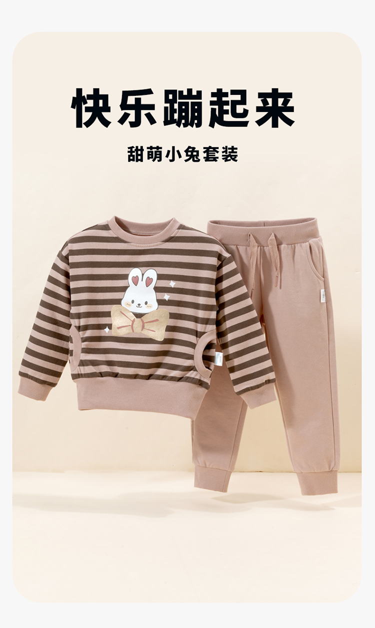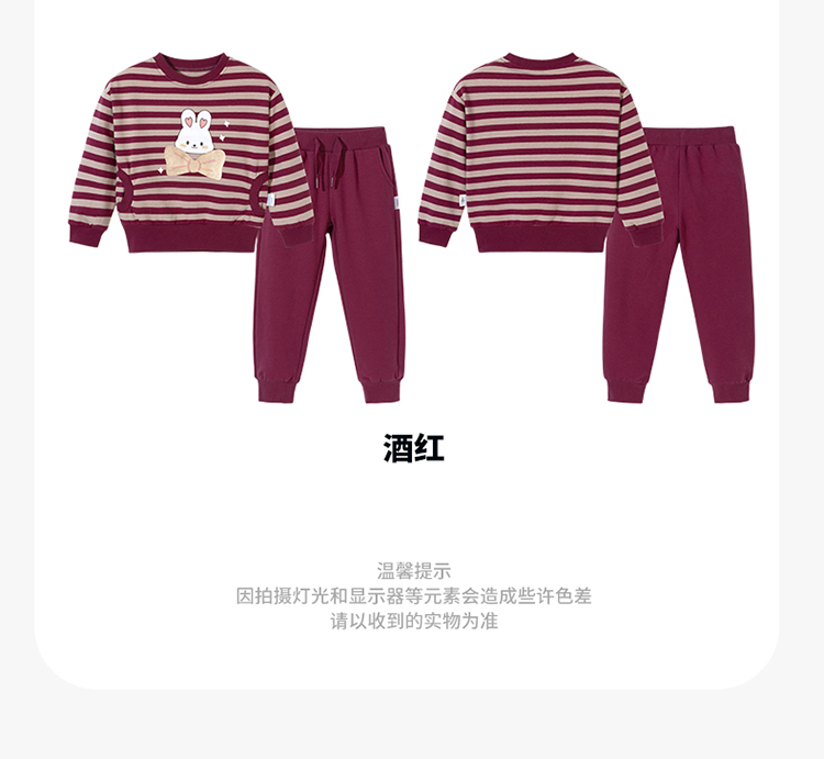 贝贝怡女童套装冬新品圆领薄绒保暖卫衣休闲百搭卫裤两件套童装JB1DT001
