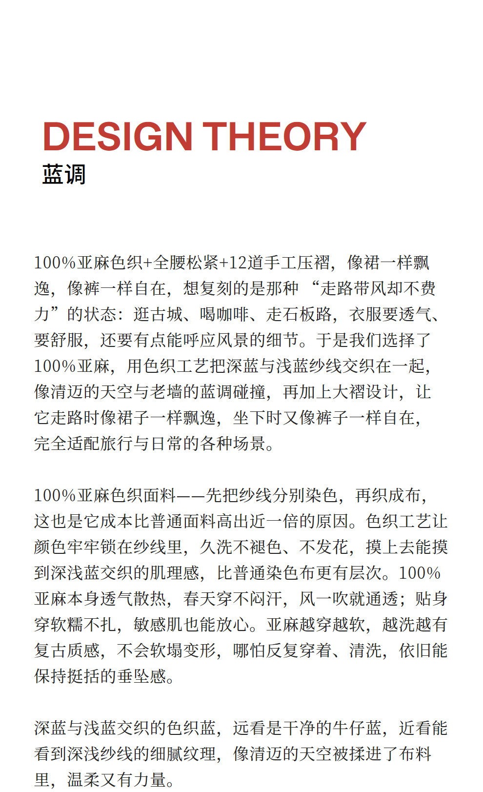 以天然亚麻为载体,融合热烈色彩与自在剪裁为身在城市、心怀远方的女性提供兼具美学与舒适的旅行着装