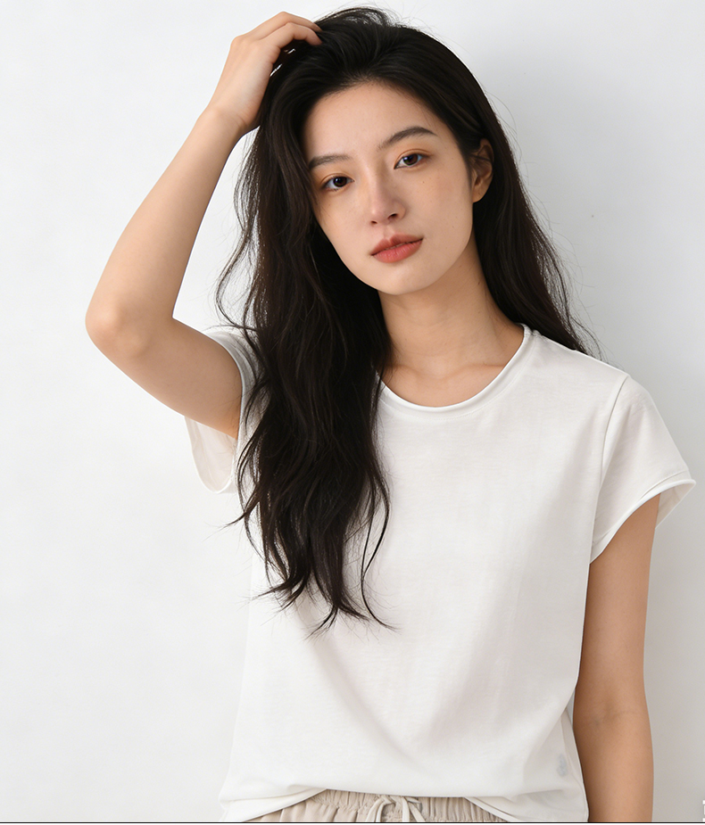 3-7天发货【QINGFAN雪花复古短袖】雪花肌理面料 软糯亲肤 自带高级松弛感 修饰脸型小U领 不规则卷边设计 复古感满满MWX