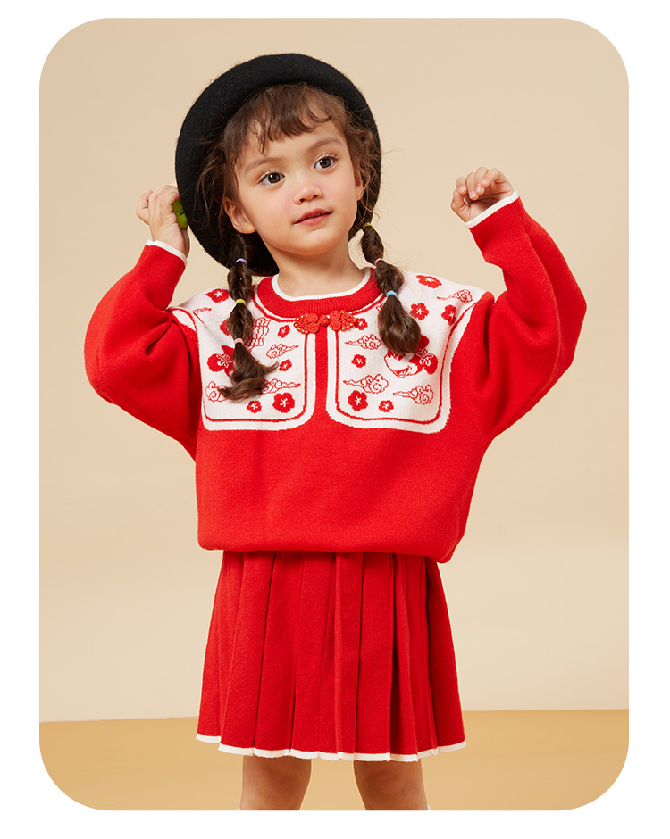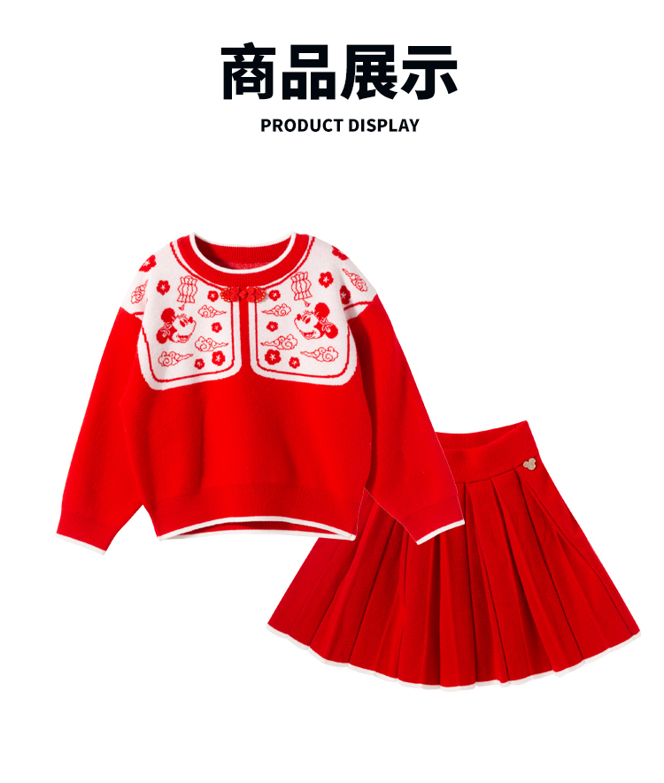 迪士尼女童红色毛衫套装XD1DT004