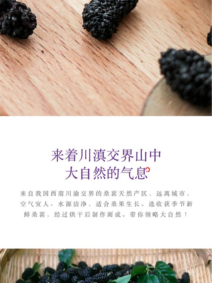 桑葚干浓浓果胶清甜润泽。一大包内含多份小包装。