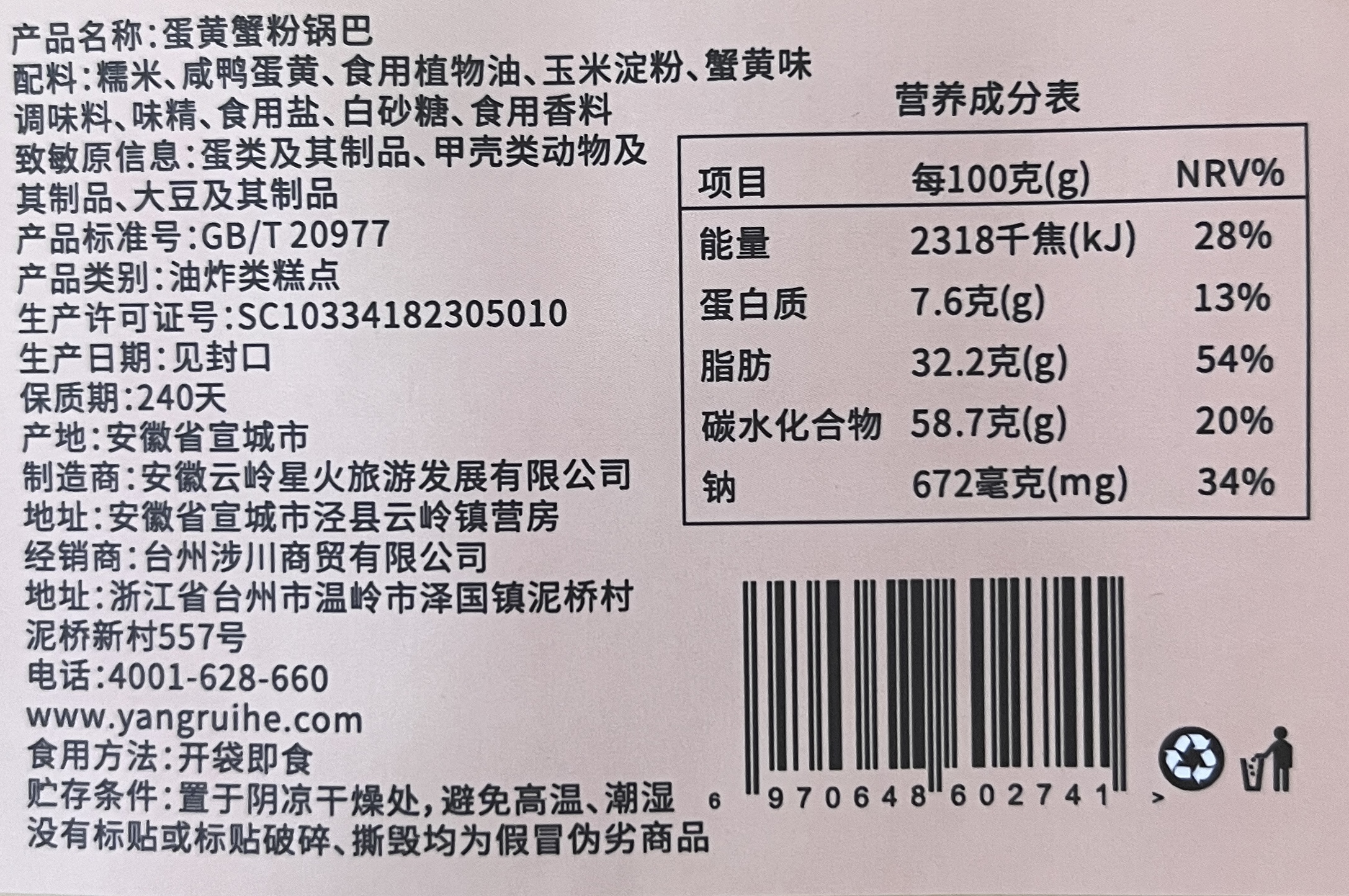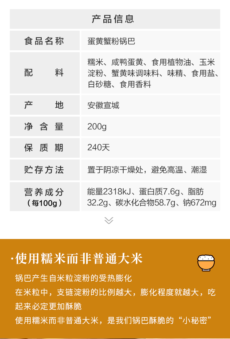 养瑞和|咸蛋黄蟹粉锅巴200g/袋 酥脆鲜香 口感嘎嘣脆
