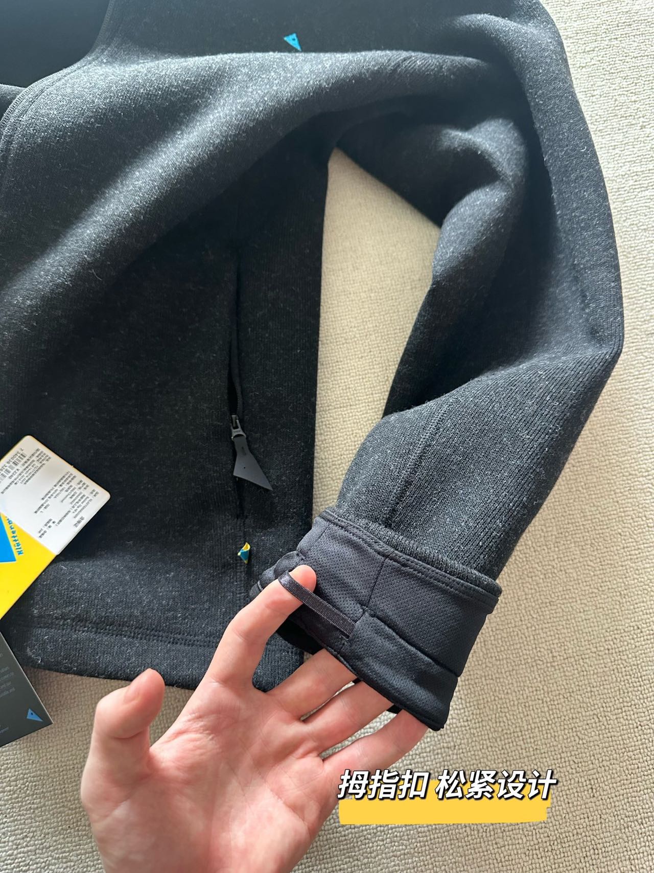 ·袖口末端拇指环设计,提供更有效的热量锁定与运动场景兼容,下摆采用后身延长设计,尤其满足山系运动环境下的实际需要