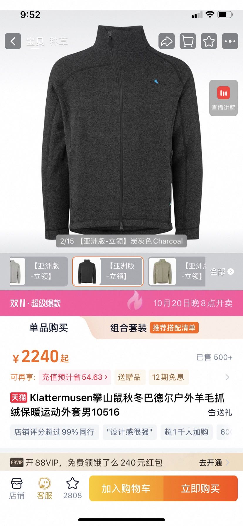 235件 大码必入 230斤可以穿!!!不补货!带质检!38.6%羊毛成分!Klattermusen攀山鼠秋冬巴德尔户外羊毛抓绒保暖运动外套