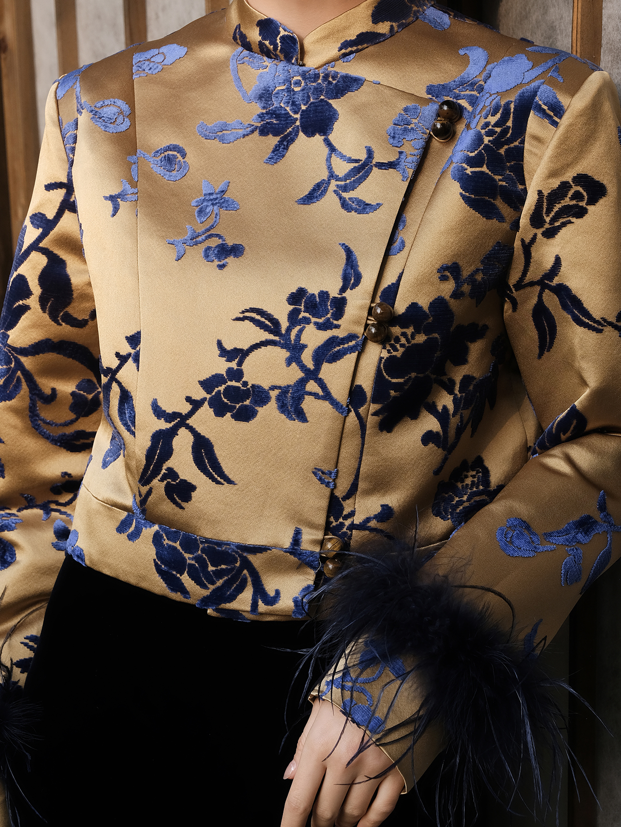 盛唐牡丹 |限量款真丝丝绒拼接漳绒一粒扣外套 (漳绒袖口各色)