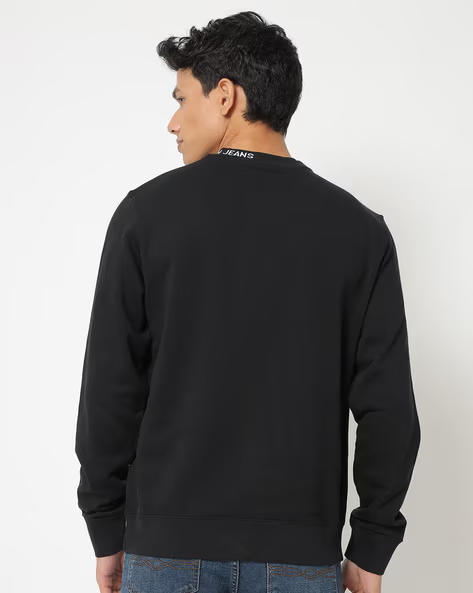 西K元单 领口提花 全棉毛圈圆领卫衣