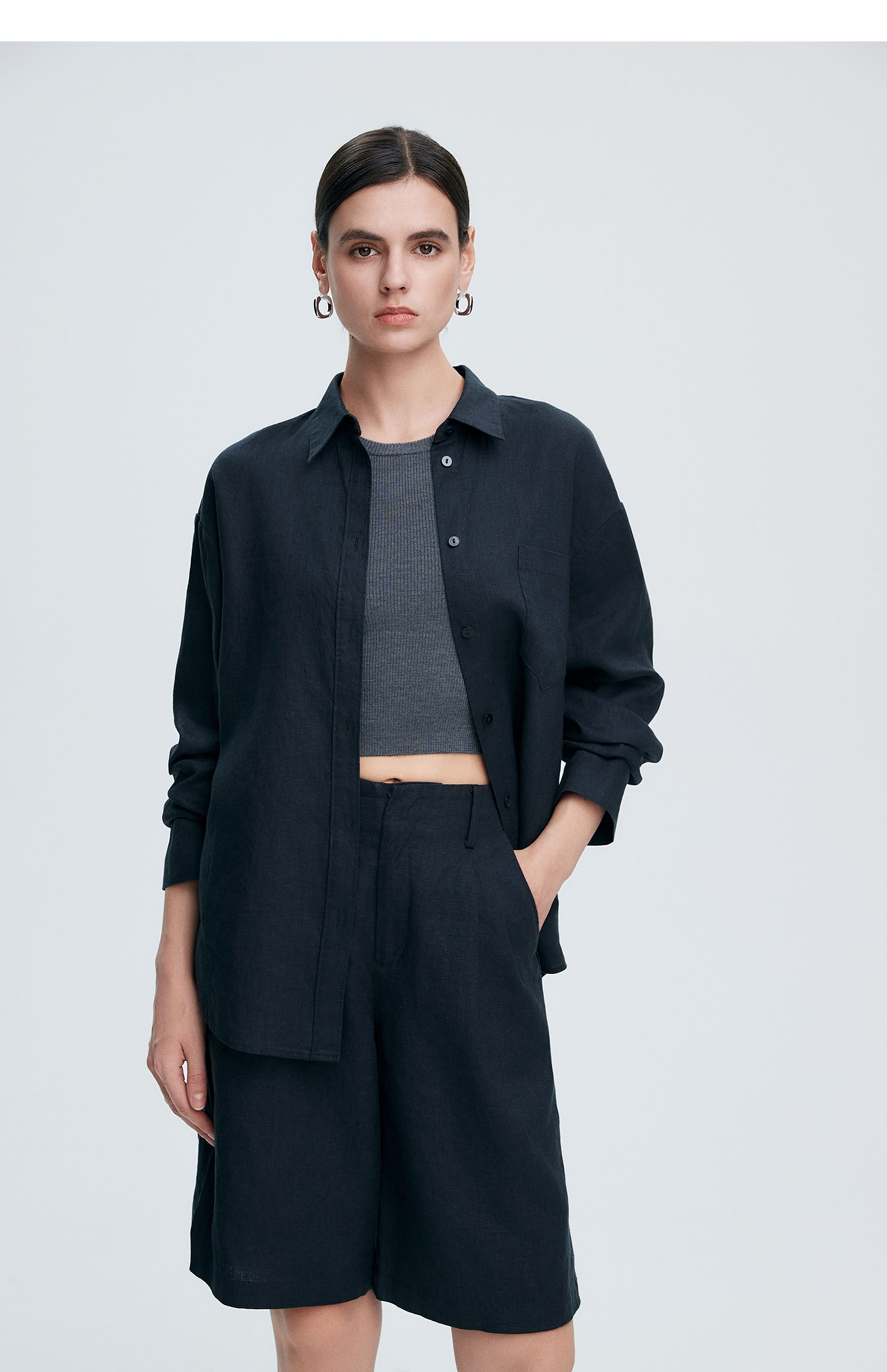 棉仓356801001 -法国罗纹微宽松长袖T恤