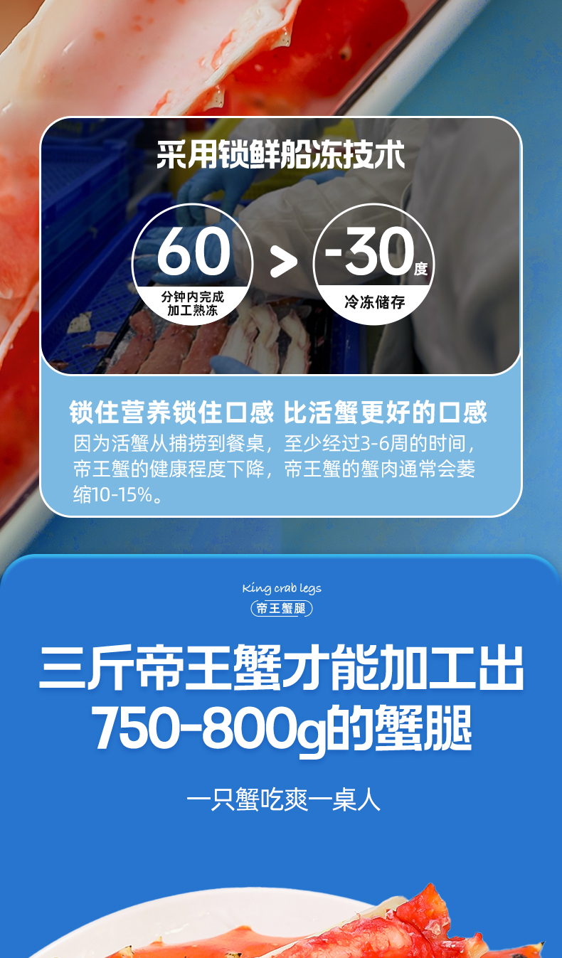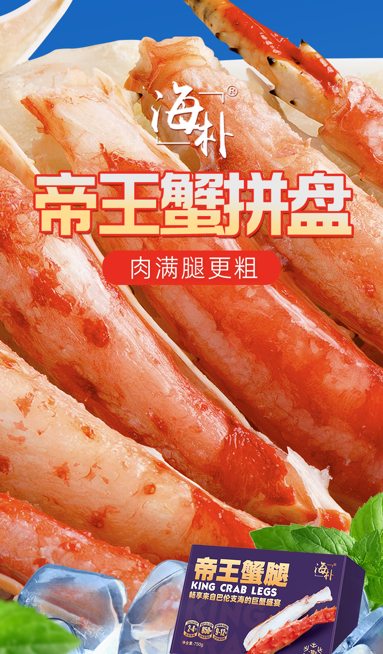 【2.5-2.17停发】【海朴】 帝王蟹腿750g*1盒熟冻即食深海海鲜蟹肉DB