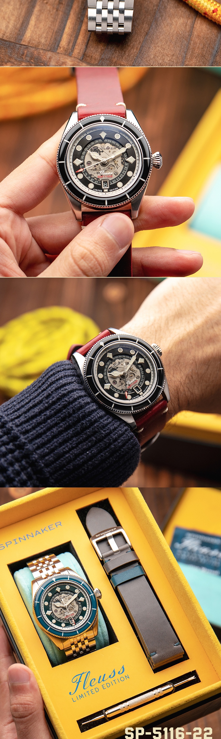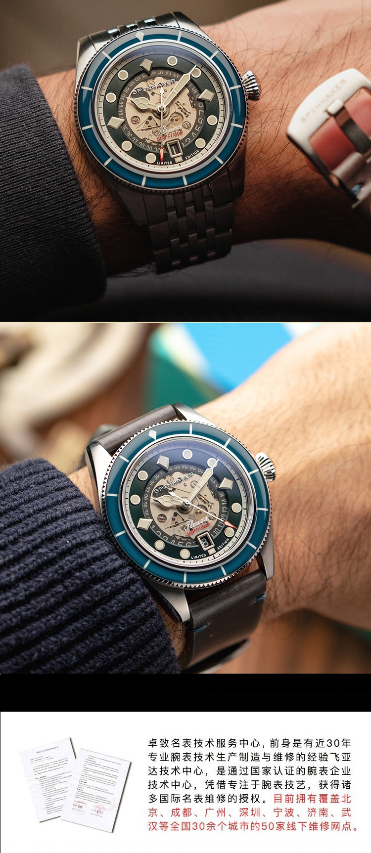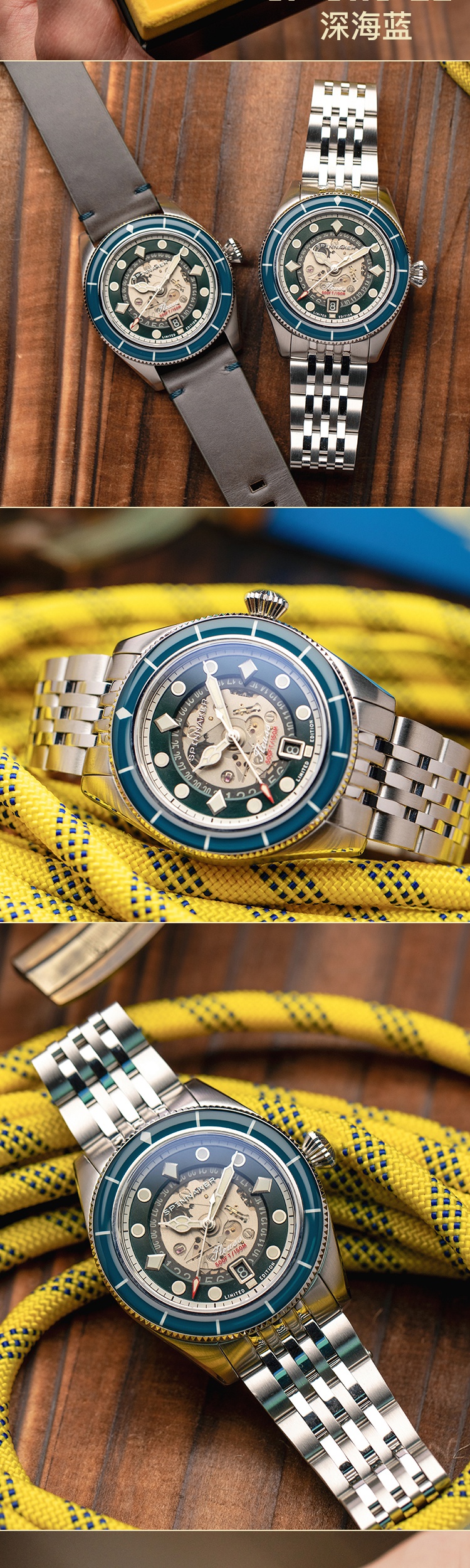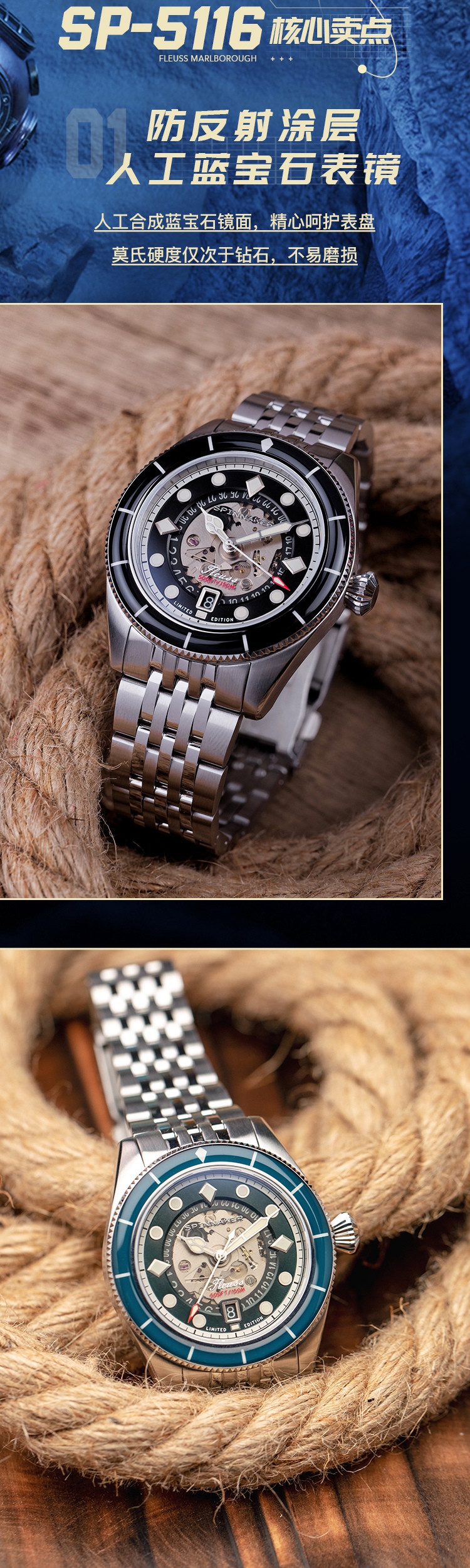 新款|英国SPINNAKER三角帆限量版镂空自动机械潜水手表钢皮带5116