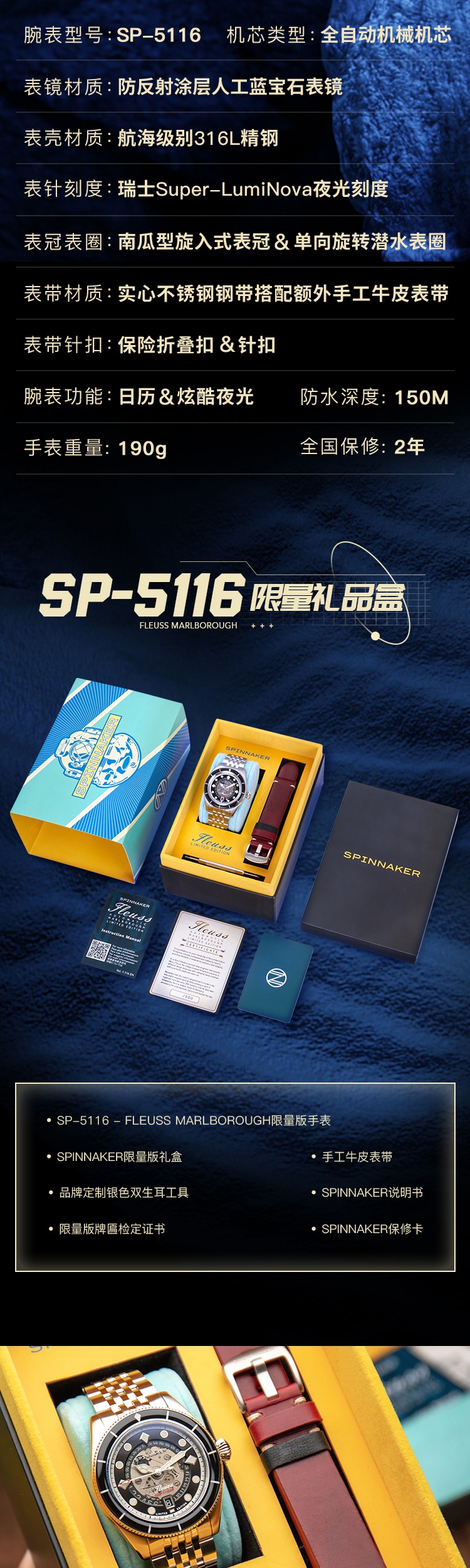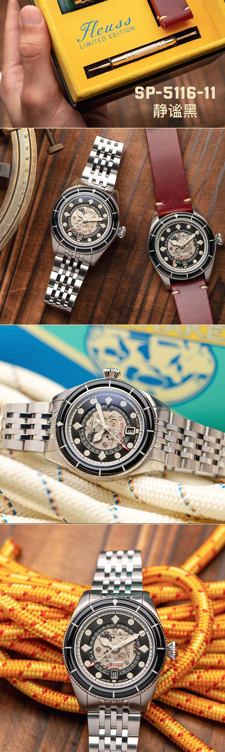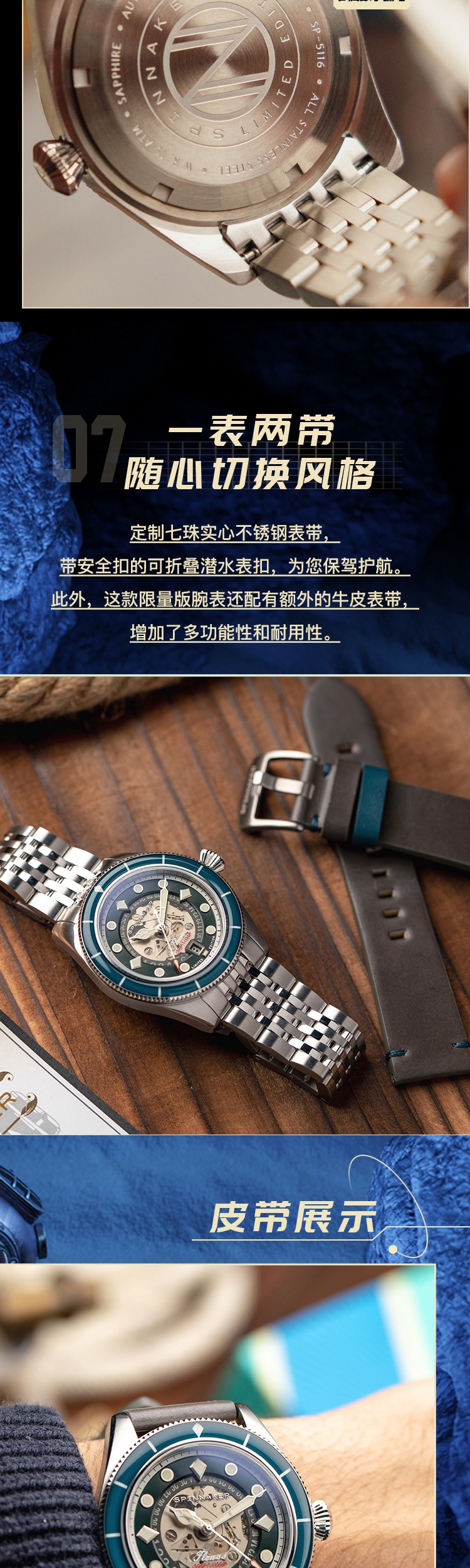 新款|英国SPINNAKER三角帆限量版镂空自动机械潜水手表钢皮带5116