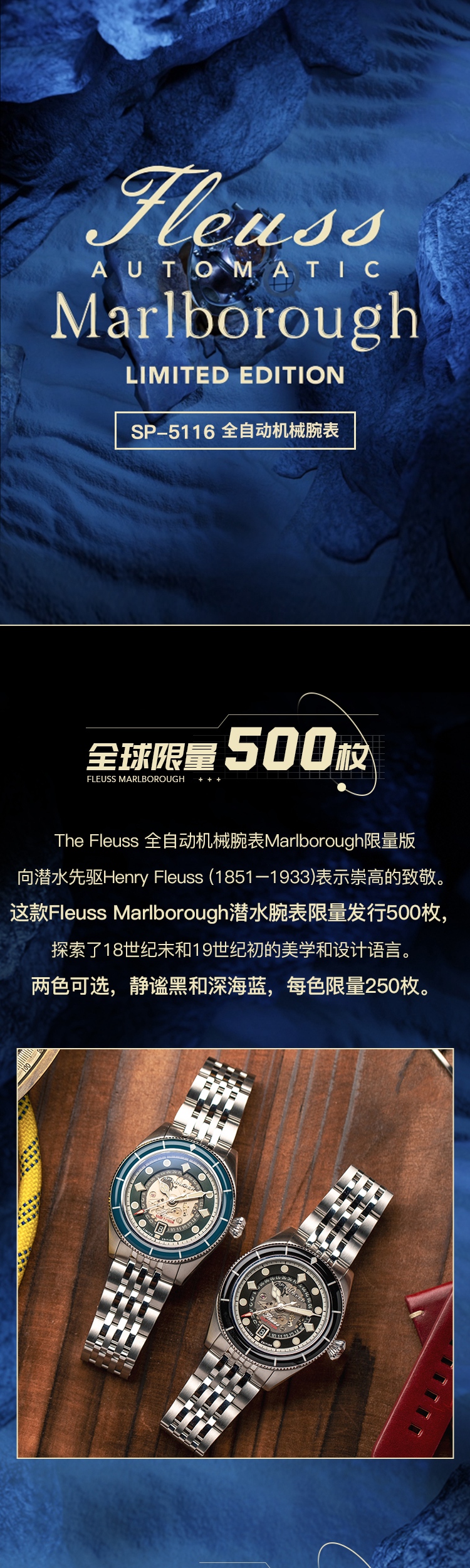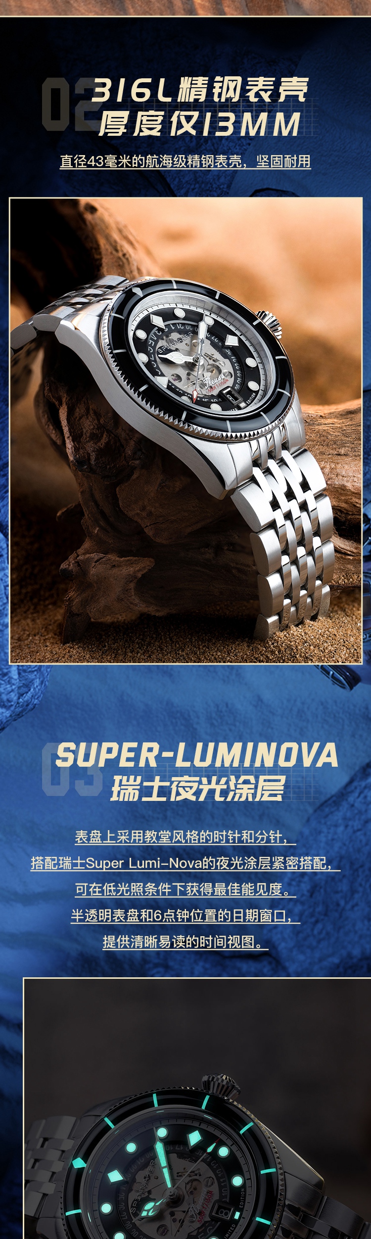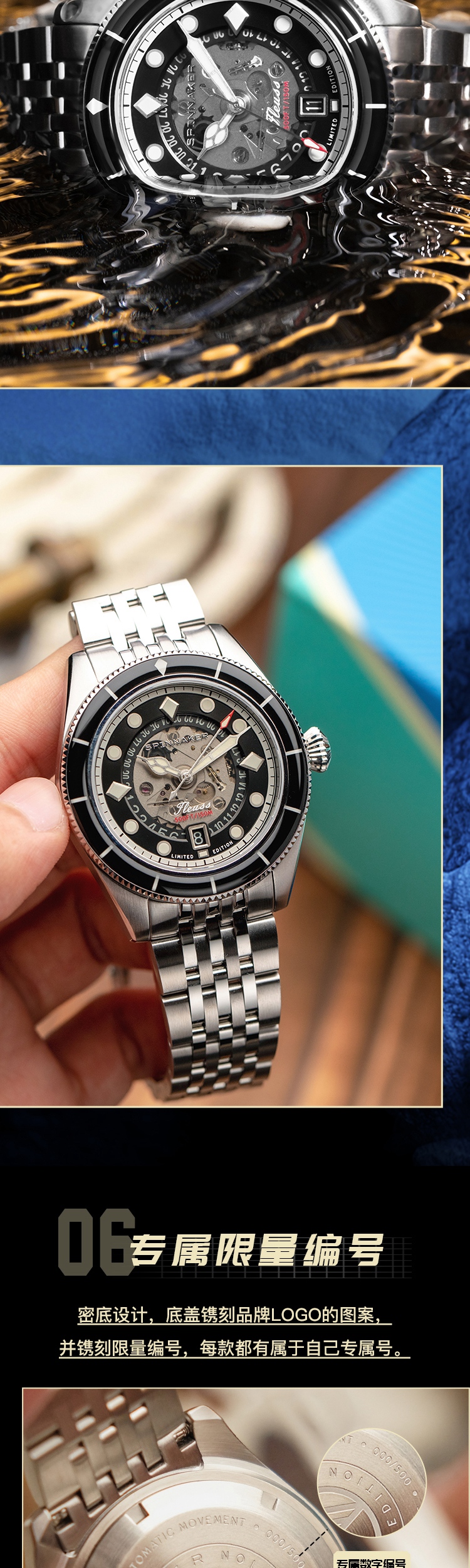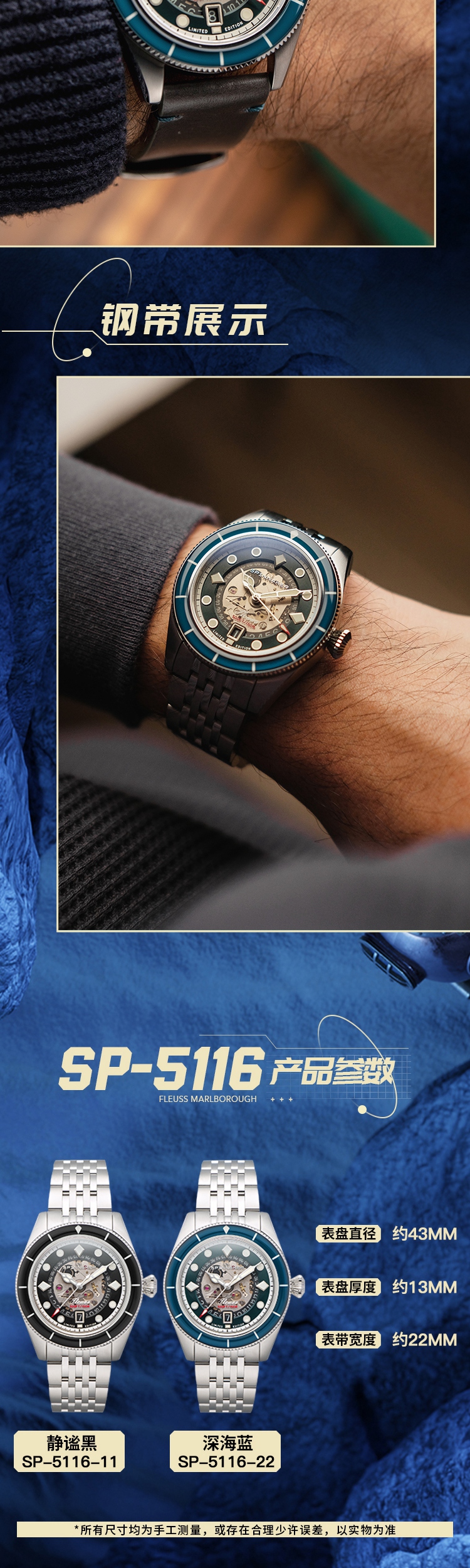 新款|英国SPINNAKER三角帆限量版镂空自动机械潜水手表钢皮带5116