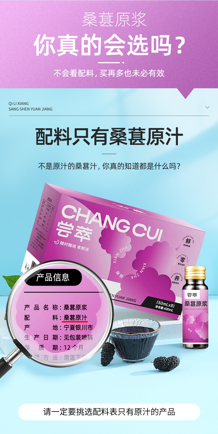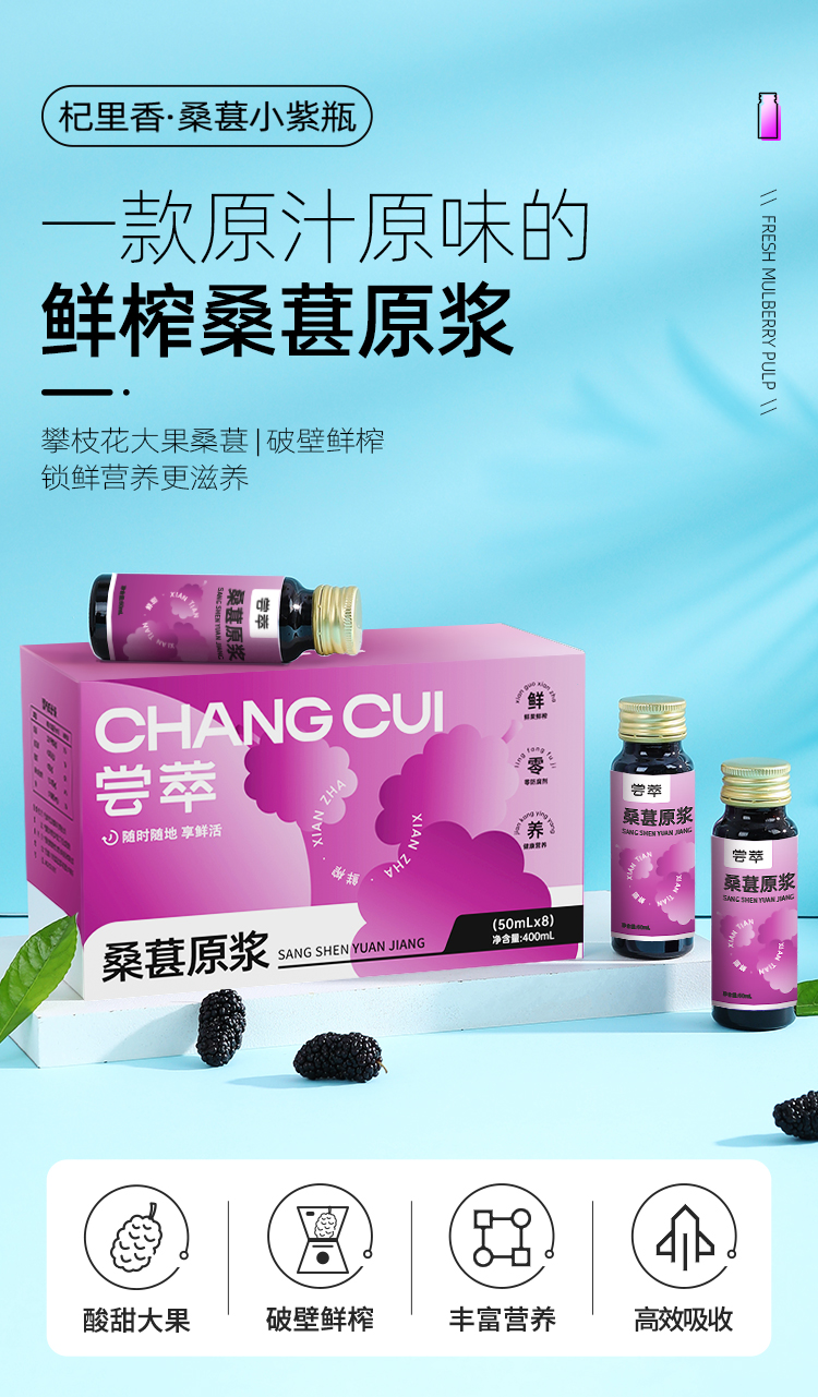 【冬季滋补】【杞里香桑葚原浆50ml*8瓶】 桑葚原浆 1瓶约等于300粒新鲜桑葚干