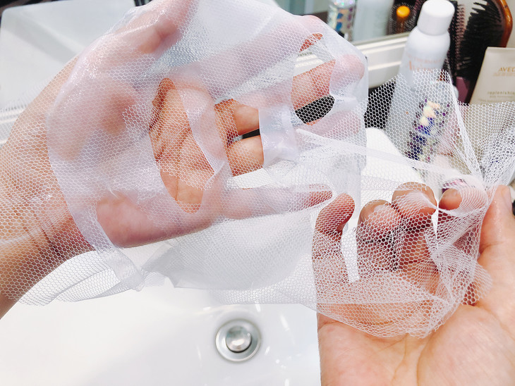 薄薄的纤维面膜两侧是由网纱保护层